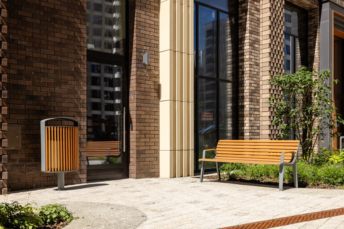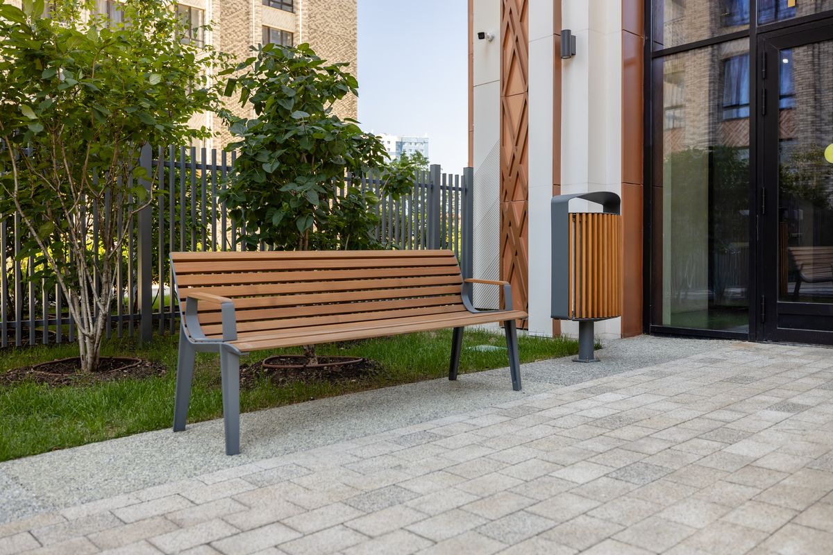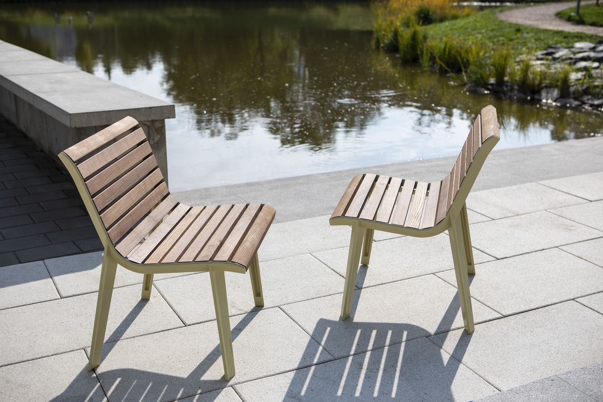 Современная скамья, вдохновленная наследием прошлого. Облегченный боковой профиль коррелирует с брутальной архитектурой 60-х годов, подчеркивающей несущие элементы при современном тогда развитии моделирования. Непрерывный ряд деревянных ламелей объединяет сиденье и спинку в цельную и элегантную форму. Современный силуэт и особое внимание к деталям – все, как подобает старой школе. Вариант скамейки со стальными стержнями вместо деревянных ламелей меняет восприятие скамейки и создает игру света и прозрачности. Скамья предлагается как в стандартной длине, так и в виде кресла, также может быть дополнена подлокотниками.