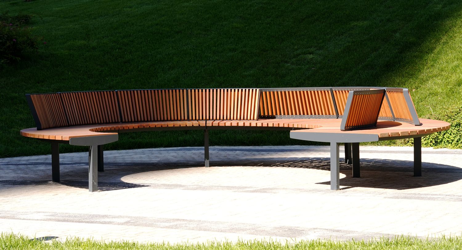 Примечательный круг с эксцентрическим отверстием или же полукруг, словно городская гавань? Игра кругов и линии, стремящиеся в центр окружностей сидений, определяют геометрию элементов линейки, которая помимо композиционной оригинальности удивит и своей практичностью. Вы можете свободно сидеть как снаружи, так и внутри. На это намекают и ассиметрично расположенные спинки. Линейка состоит из закрытых и открытых элементов сидения и дополнена самостоятельными круглыми сиденьями на центральной ножке, высокие варианты которых служат столиками. Круглая форма – отличная основа для различных композиций, которые будут привлекательно смотреться в пространстве.
