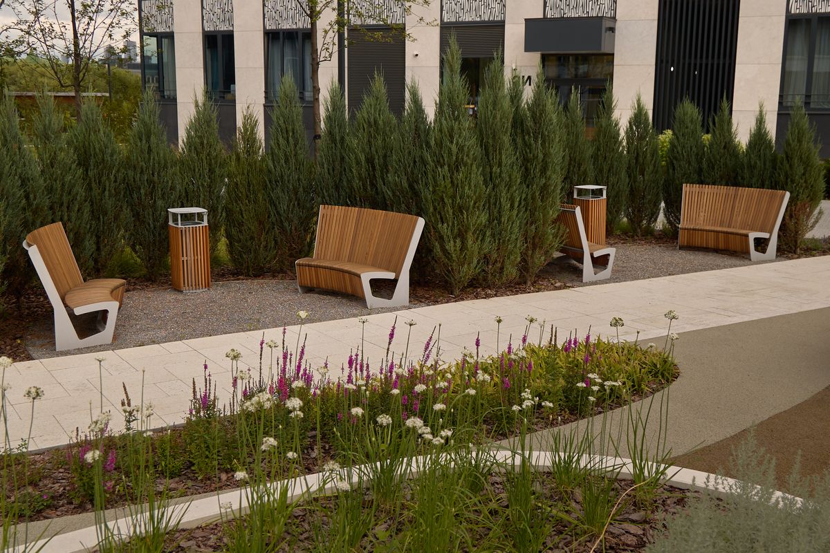 Система элементов для сидения, продолжающая популярную линейку Landscape, неизменно привлекает внимание и получает престижные дизайнерские награды. Выразительный боковой силуэт с характерной дистанцией между сиденьем и спинкой определяет основную форму. Отдельные модули серии можно комбинировать неограниченное количество раз для создания сидений различной длины с изогнутыми и прямыми участками. Их также можно дополнить отдельными сиденьями стандартной длины. Новинкой являются подлокотники, разработанные специально для этой серии.