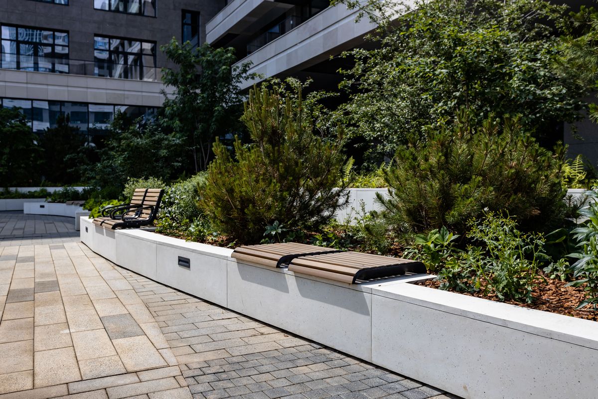 Различные бетонные ограждения или ступени являются привычными элементами общественного пространства и часто становятся местом для сидения. Серия скамей Port, вдохновленная успешной серией Portiqoa, безупречно подходит для таких ситуаций. Модульная система включает варианты со спинкой и без нее, комбинируемые практически без ограничений. Боковины из алюминиевого сплава являются элегантной деталью, а благодаря стальному анкерному элементу скамья визуально парит над поверхностью.