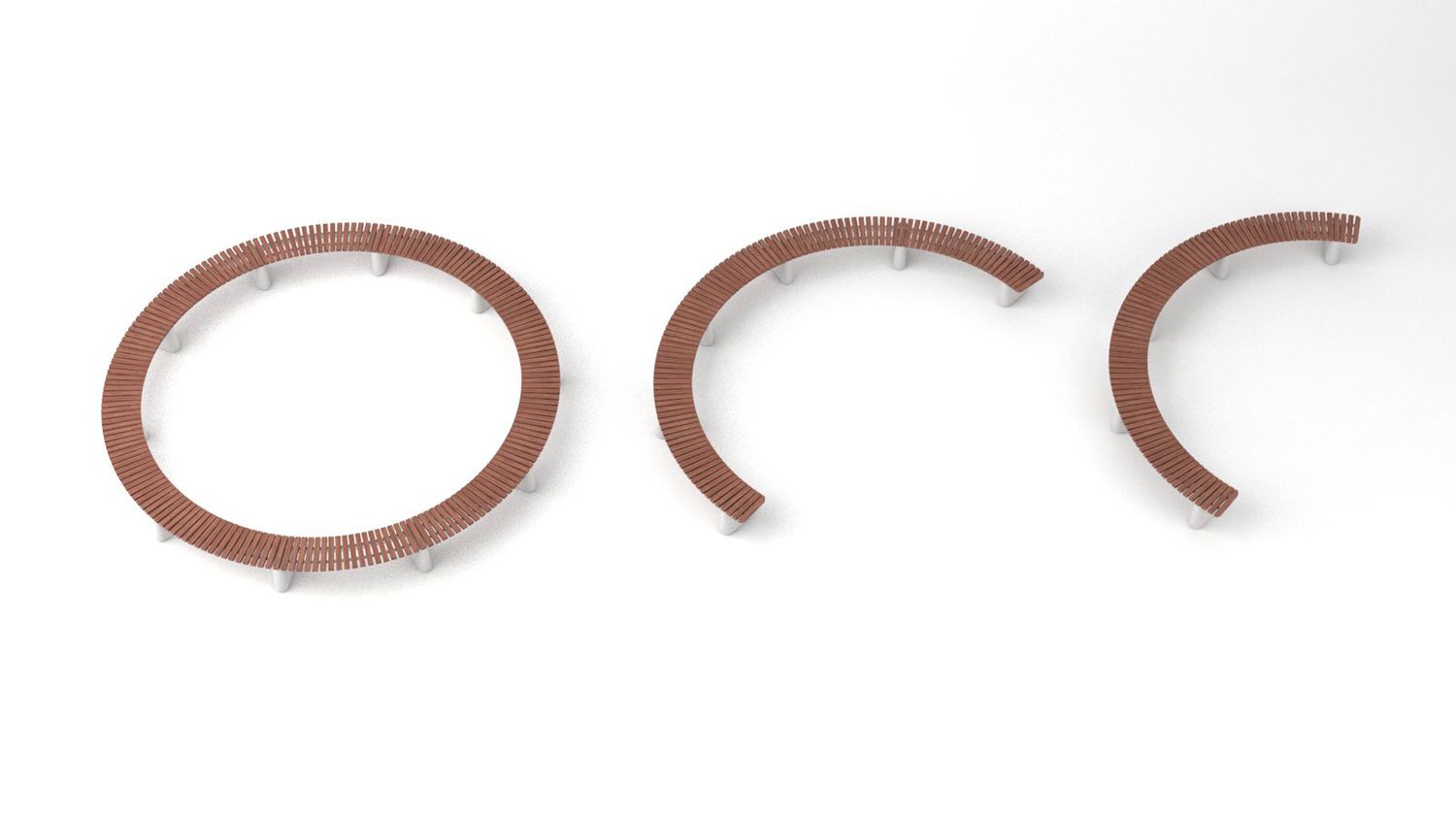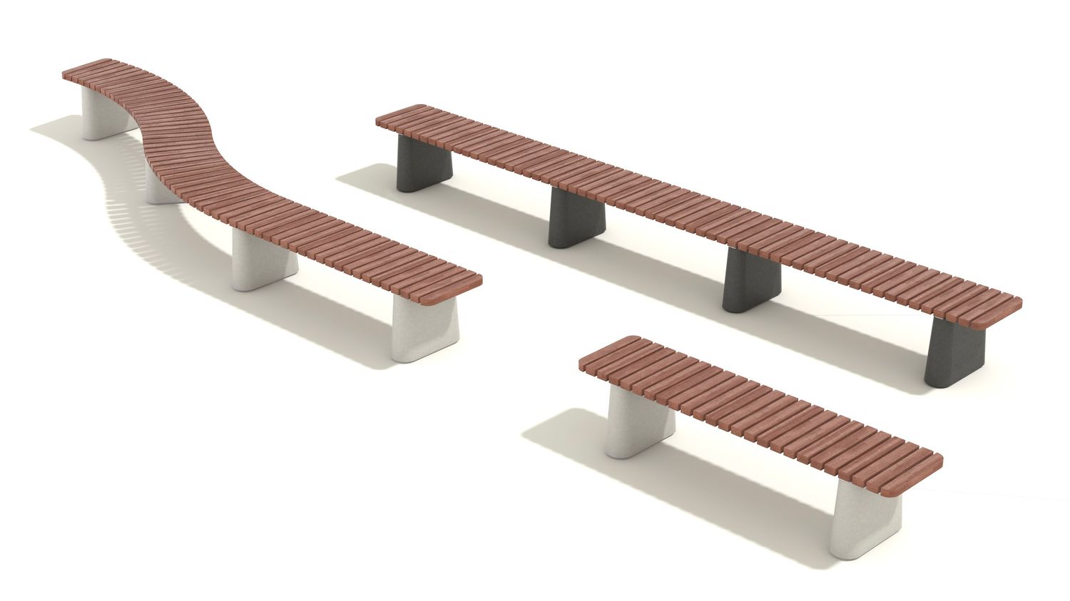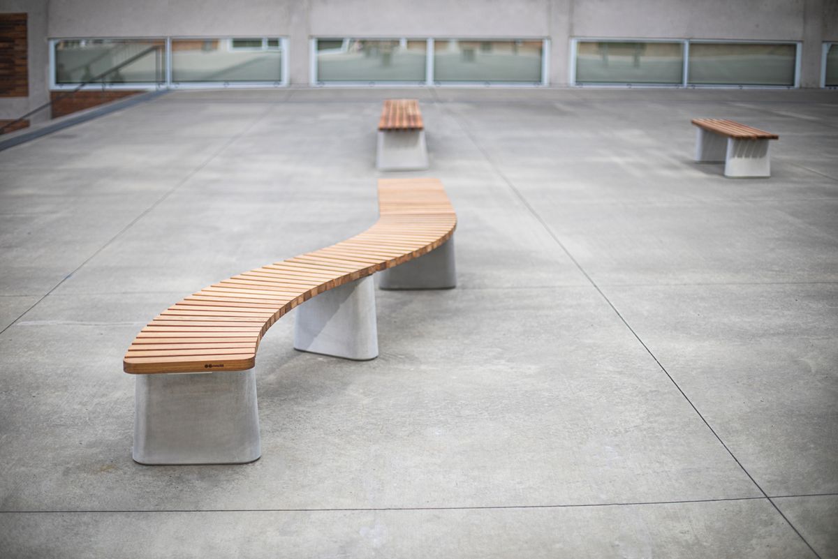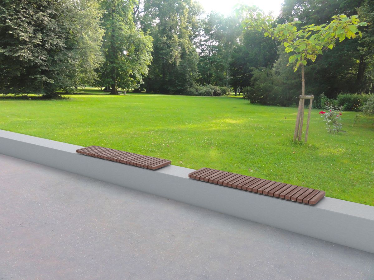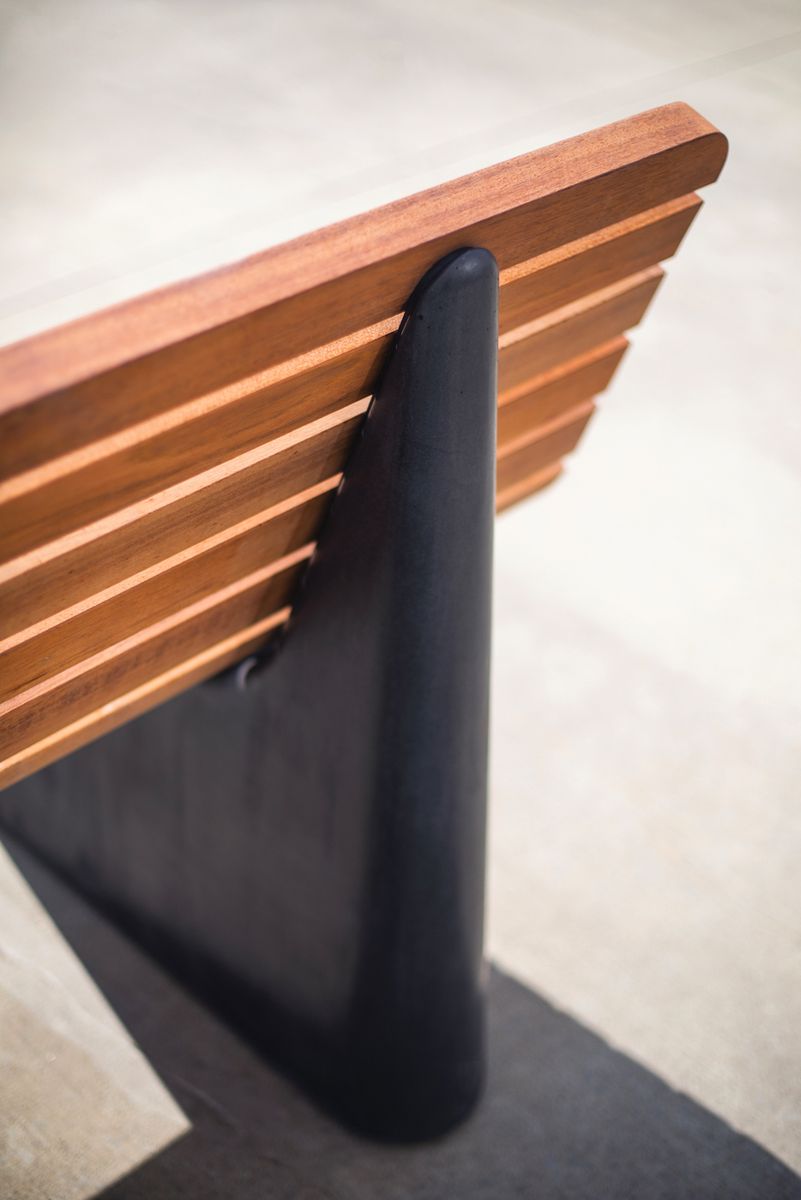 Массивные бетонные основания доступны в нескольких фактурах, соединенные ламелями из лиственницы или термообработанного ясеня с покрытием маслом. Все стальные элементы горячеоцинкованы или изготовлены из нержавеющей стали. Возможно крепление к поверхности.