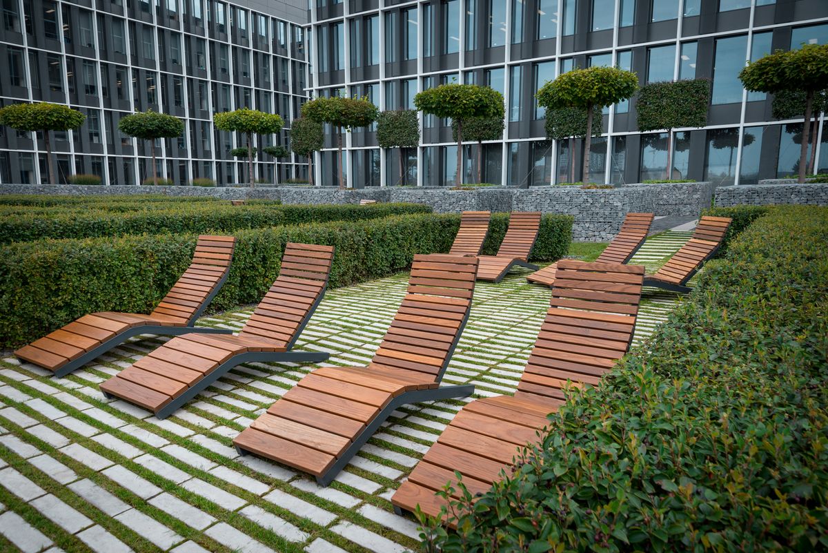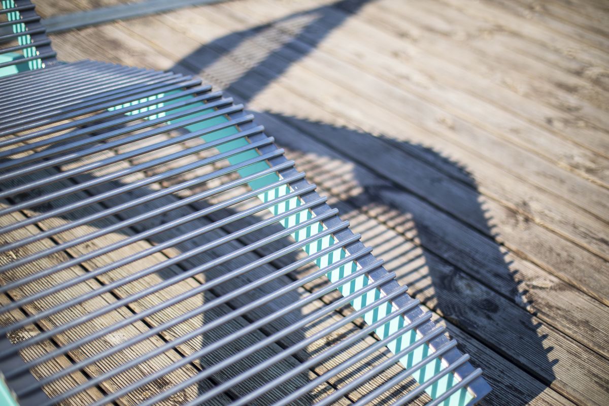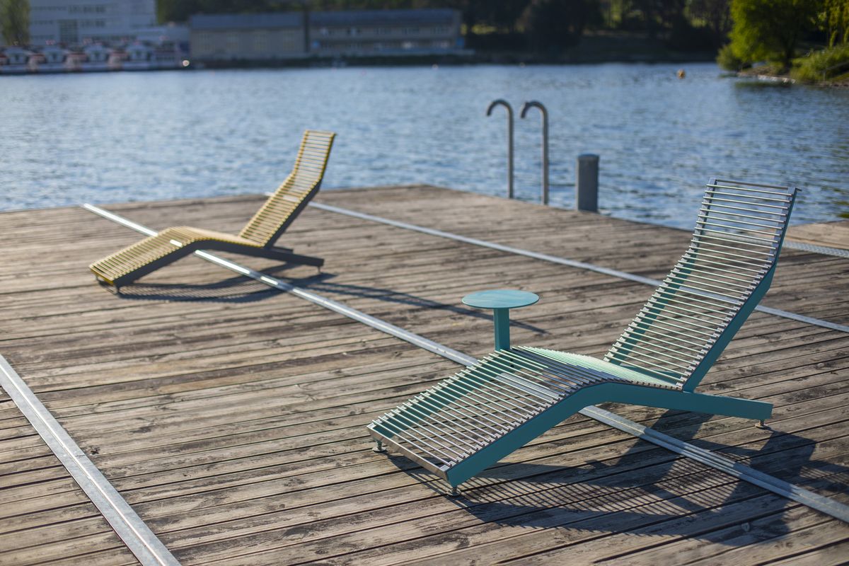 Rivage открывает совершенно новую продуктовую категорию – шезлонги для общественных пространств. Простая и прочная конструкция с характерным элегантным профилем поддерживает доски и ламели из массива дерева. Версия с сиденьем из стальных стержней выглядит легко и актуально, а в сочетании с яркими цветами она превратит общественное пространство в оазис, который сложно не заметить. Послужит отличным дополнением к парковым скамейкам и элементам сидения для отдыха людей в общественных пространствах. Парки, скверы, набережные, зоны отдыха в школьных помещениях, террасы отелей − все эти места можно оживить новыми шезлонгами Rivage, которые можно как прочно прикрепить к поверхности, так и оставить свободно перемещаемыми. Интересным и практичным аксессуаром послужит прочный цельнометаллический столик для напитка, ноутбука или книги, контрастный цвет которого превратит его в яркий акцент. Столик может быть оснащен USB-модулем, что еще больше расширяет вариативность и возможности использования шезлонга.