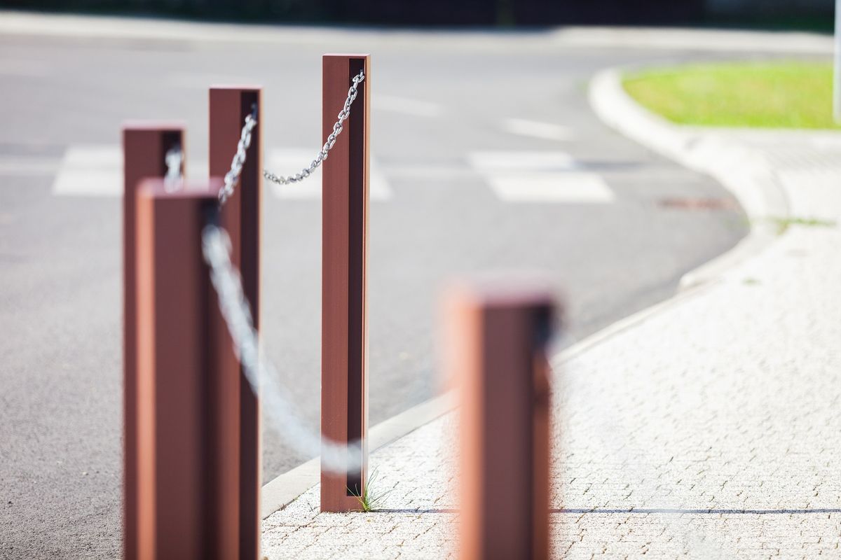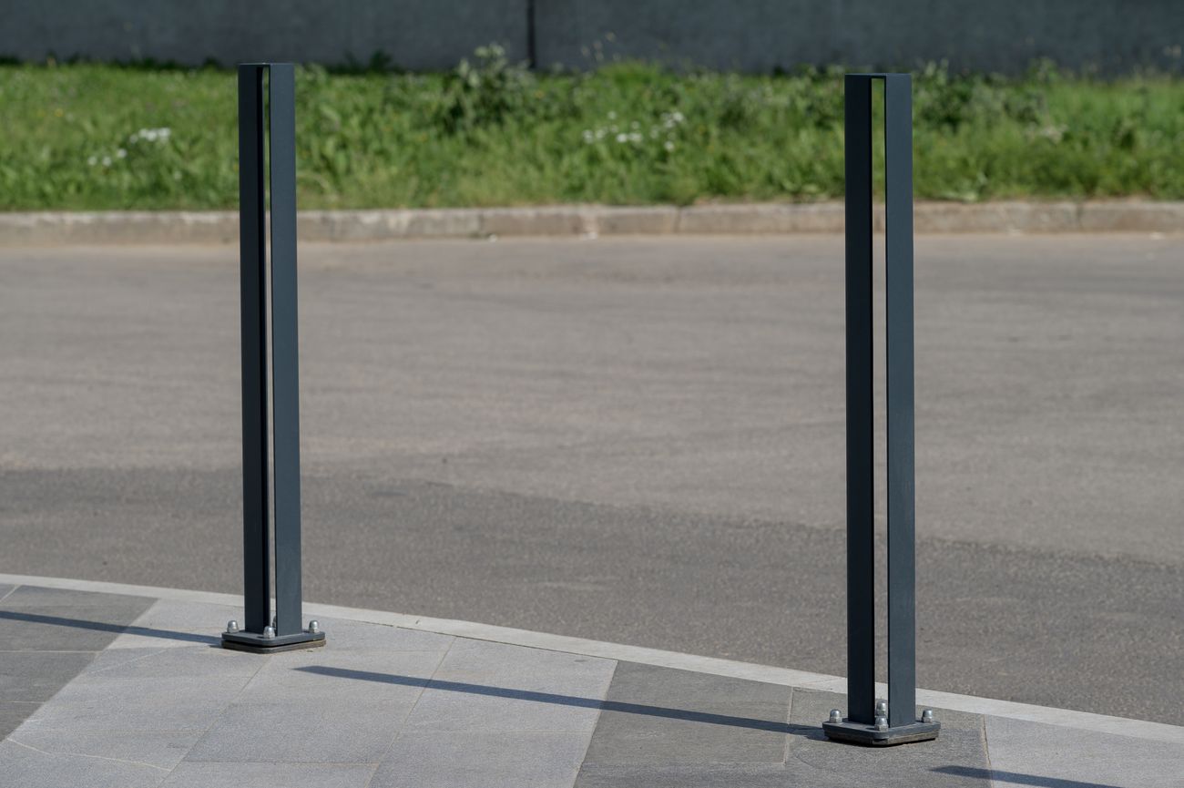 Конструкция из оцинкованной стали, покрытая порошковой краской. Опционально можно добавить герб из коррозионностойкого цинкового сплава или алюминия или LED – подсветку. Анкеровка на или под брусчатку на шпильки с помощью химических анкеров на предварительно подготовленное бетонное основание. Доступны также съемные варианты столбиков.