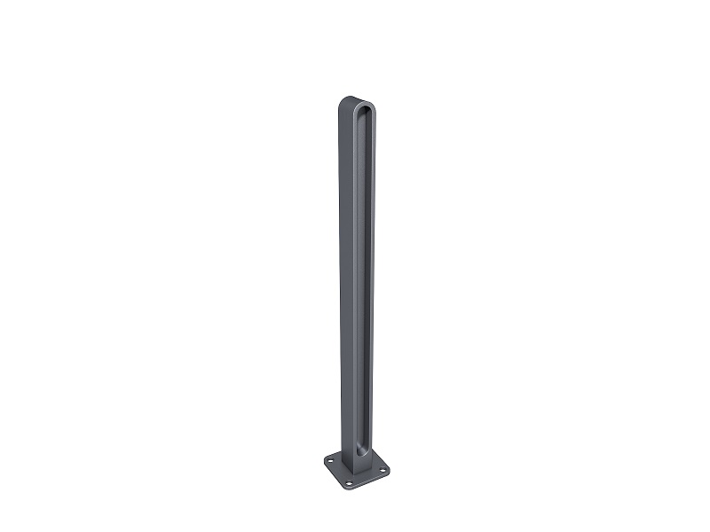 Корпус столбика изготовлен из переработанного и полностью перерабатываемого алюминиевого сплава. Крепление к поверхности производится на шпильки с помощью химических анкеров на предварительно подготовленное бетонное основание ниже уровня мощения.