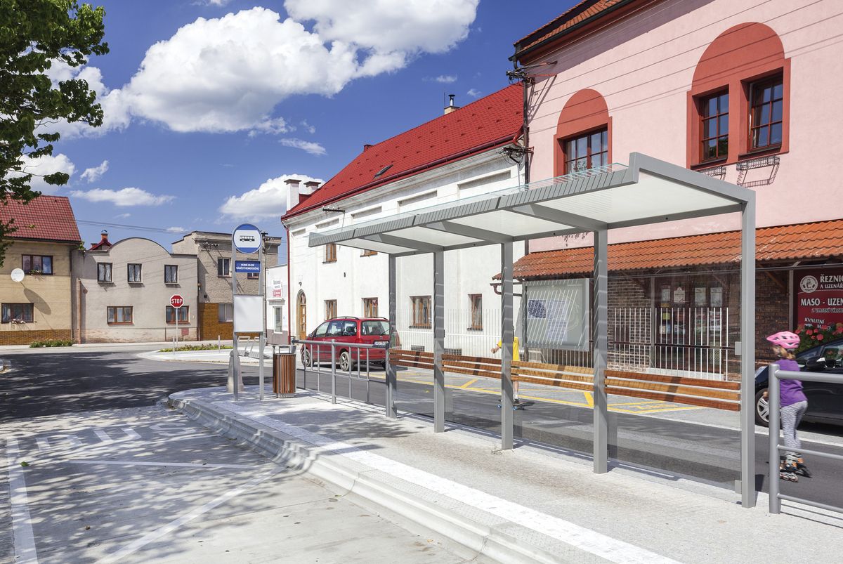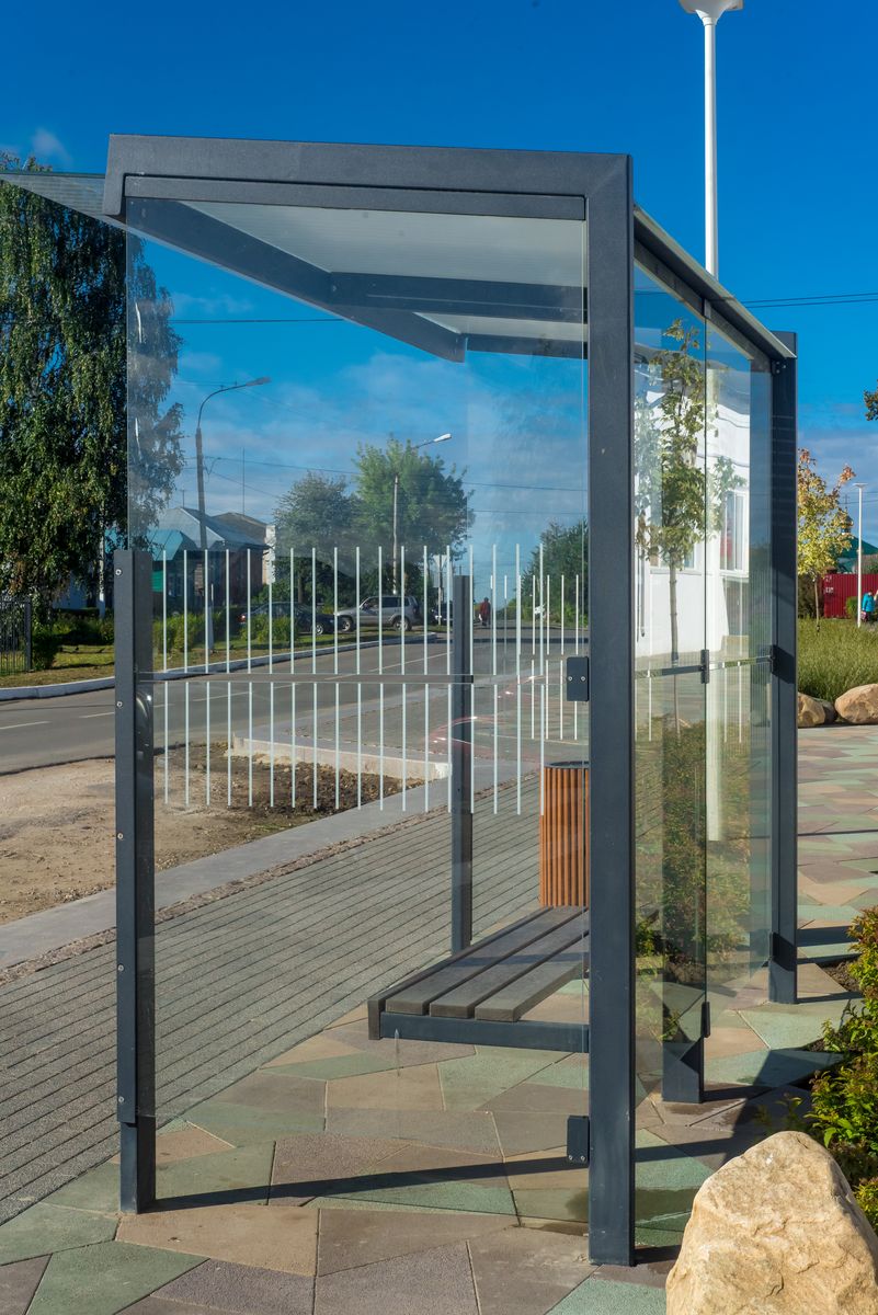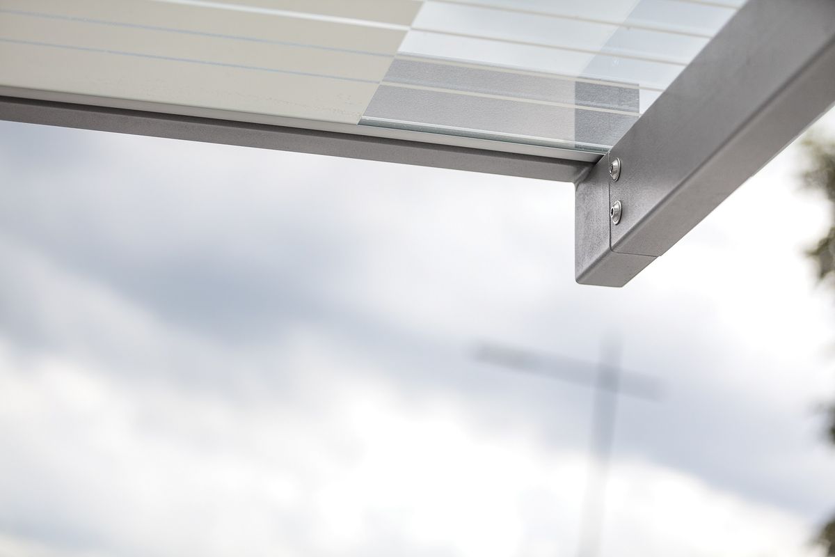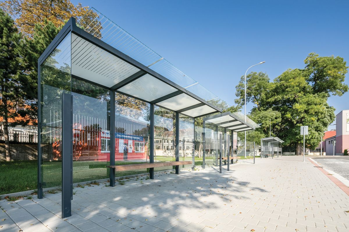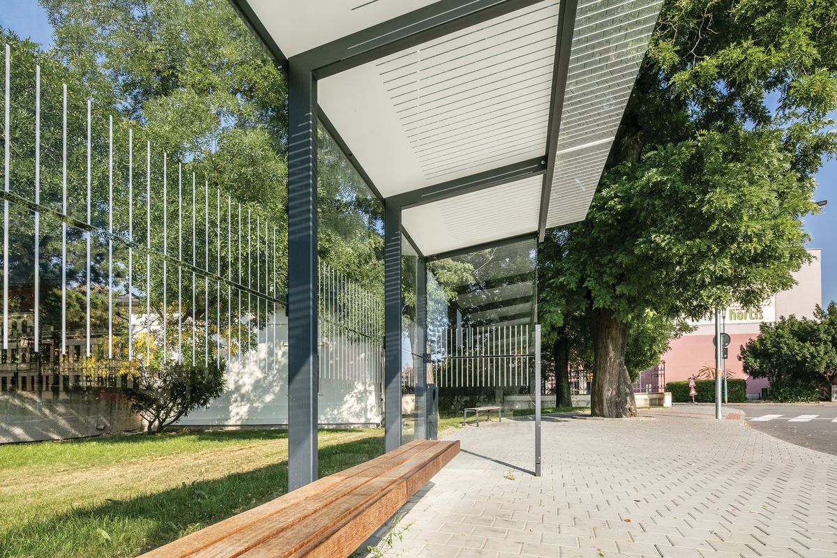 Ряд павильонов с оптимизированными функциональными элементами. Простая, надежная и эффективная модульная система основана на новых опорах в задней стенке. Это позволяет нам создавать подходящие навесы без боковых стенок, что практично в узких или ограниченных пространствах. Встроенная элегантная скамья с деревянными досками - приятная деталь, которая входит в комплект всех павильонов. Графические рисунки, нанесенные на стеклянные панели крыши и стен, повышают эстетичность павильона. Также есть возможность разместить на крыше слой экстенсивной растительности - суккулентов.