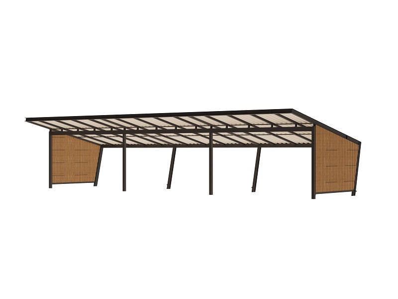 Универсальные навесы для автомобилей становятся новым сегментом в нашем портфолио. Четкие линии отвечают самым строгим требованиям к размерам, техническим характеристикам и конструкции. На крытой парковке также предусмотрена встроенная электрическая зарядка. Боковые стенки могут быть отделаны деревянными рейками, что придает им индивидуальность, и могут включать в себя специальный шкаф для электроустановок. Кроме того, мы предлагаем возможность размещения слоя для экстенсивной растительности на крыше.