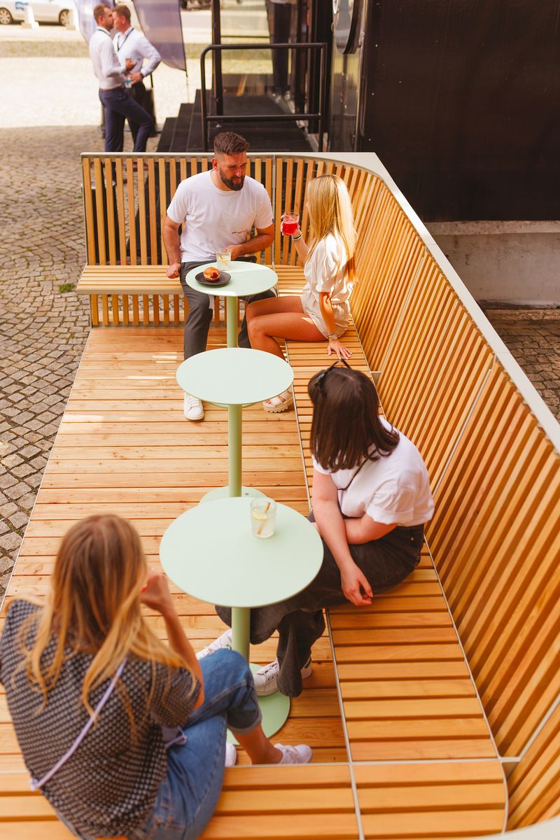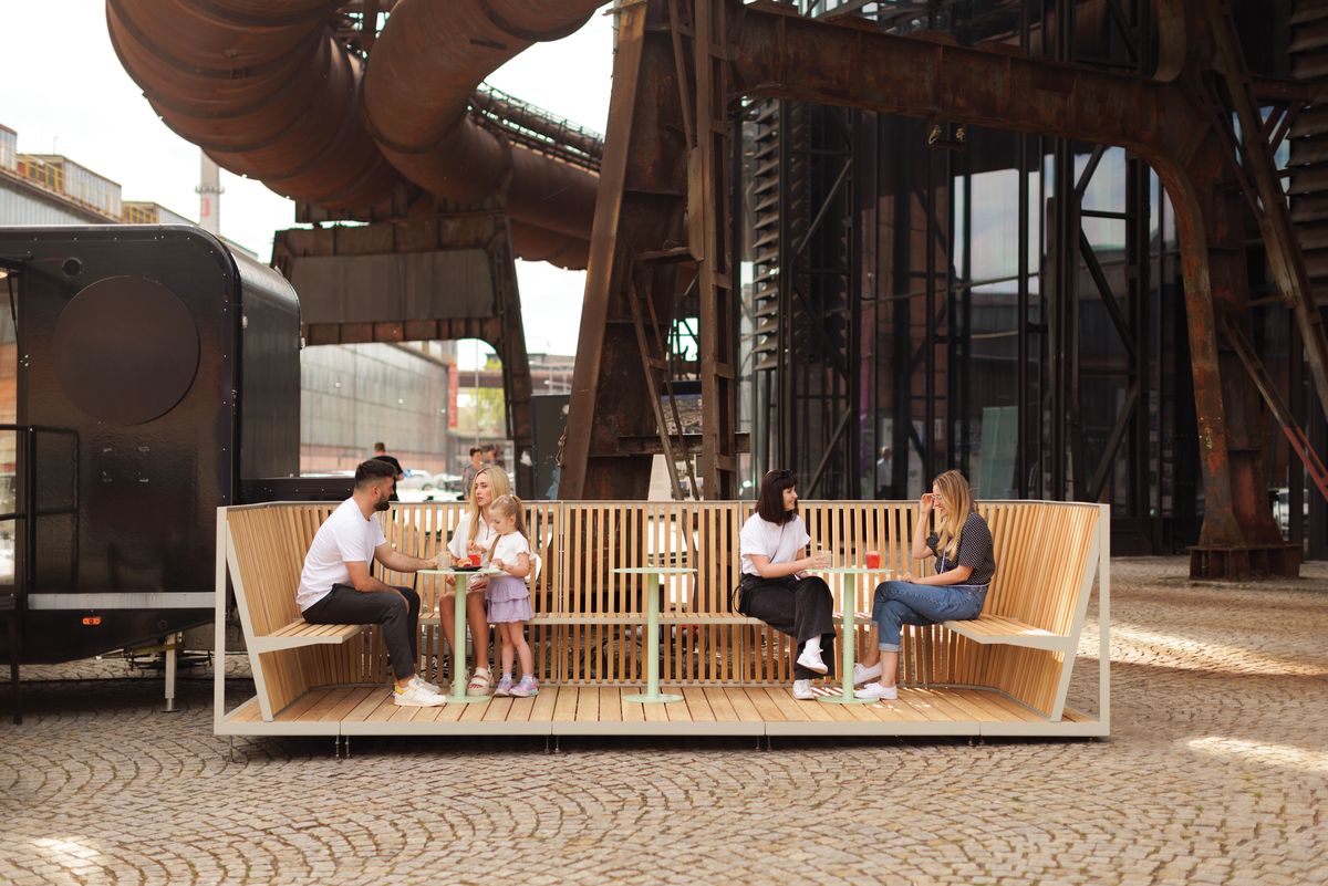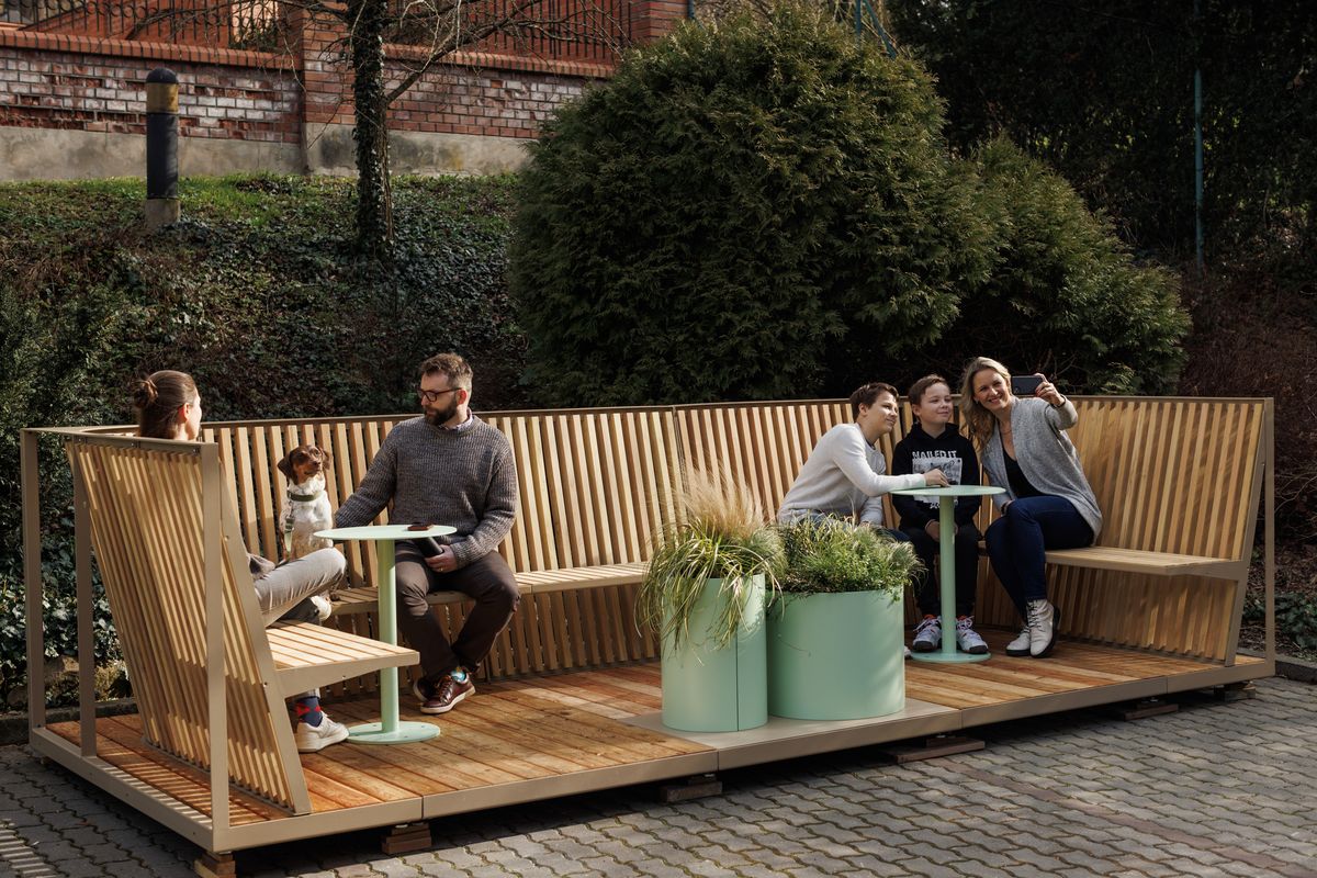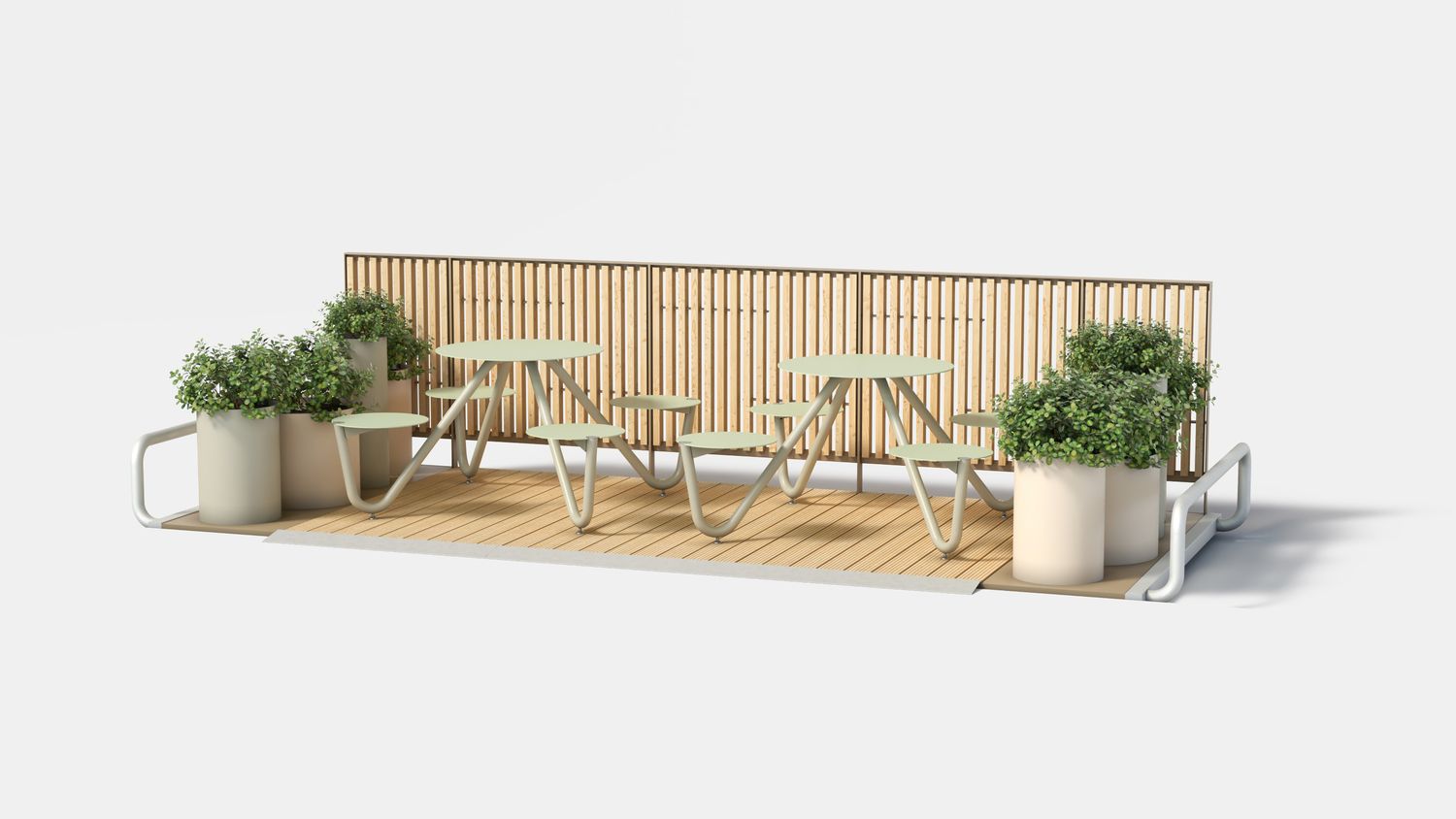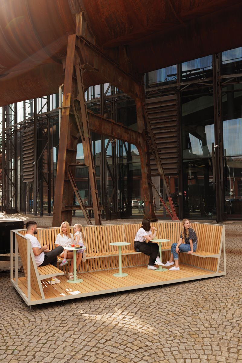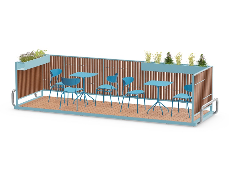 Развитие шумного города неоспоримо. Улицы становятся нашим вторым домом благодаря непосредственному взаимодействию с людьми. Городская мебель отвечает за то, чтобы реагировать на изменения. Доказательством этого являются умные элементы, зеленые крыши, солнечная энергия и наша новая Platform. Островок быстро захватывает новые пространства и принимает множество форм. Платформа разрушает стереотипное восприятие парковочных мест или неиспользуемых городских уголков. Она превращает их в террасы баров и кафе, зоны отдыха и места, утопающие в зелени.