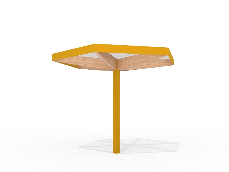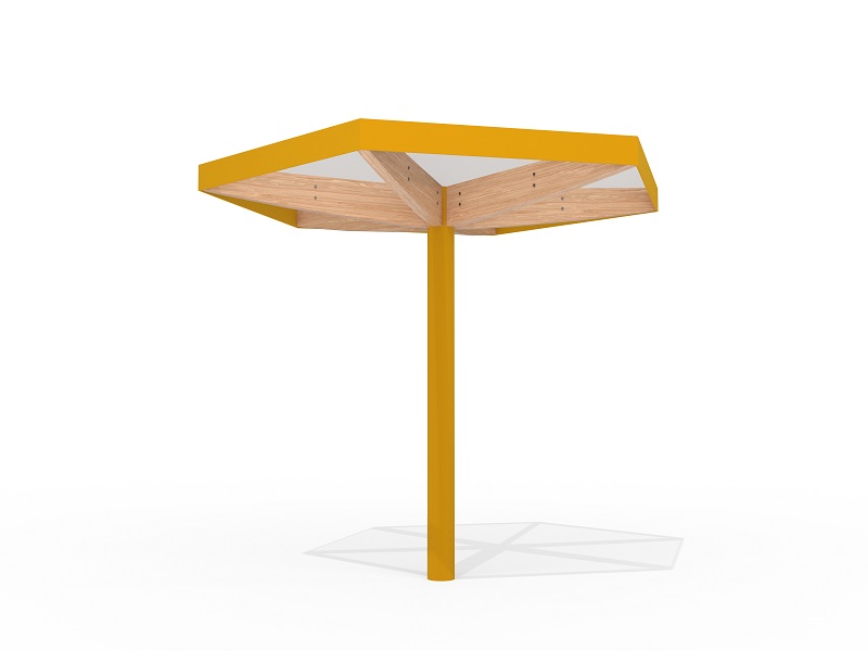 Visor — это серия элегантных навесов, где современный инженерный подход встречается с продуманным дизайном. Их лаконичные формы — круглые, квадратные или шестиугольные — позволяют создавать как уютные одиночные конструкции, так и протяженные ансамбли, защищающие пешеходные маршруты от дождя и солнца. Круглые навесы, собранные в композиции с разной высотой (2700 или 3000 мм), напоминают ритмичный танец, а многоугольные модули, соединяясь, формируют выразительные архитектурные элементы.