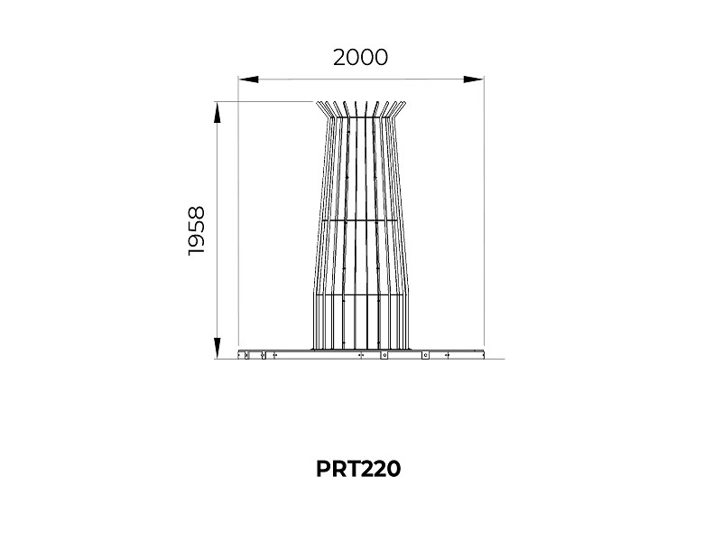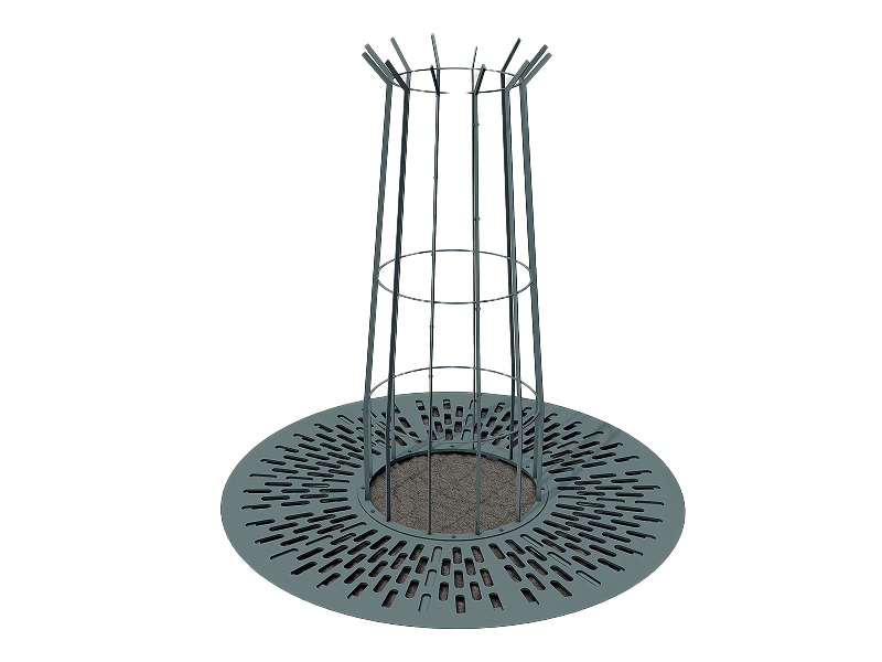 Круглая форма решетки Porta символизирует портал, через которые городское пространство встречается с природой. Лучистая перфорация стальных листов создает эффект визуального движения, мягко направляя взгляд к стволу дерева. Встроенные светодиодные светильники подчеркивают красоту кроны в вечернее время. Изготовленная из горячеоцинкованной стали, Porta сочетает лаконичность конструкции с безупречной долговечностью. Решетку можно укомплектовать вертикальной защитой для ствола дерева. Простота монтажа на стальную раму делает это решение одновременно технологичным и эстетически завершенным. Porta — это не просто защита, а элегантный акцент, соединяющий урбанистическую среду с природной гармонией.