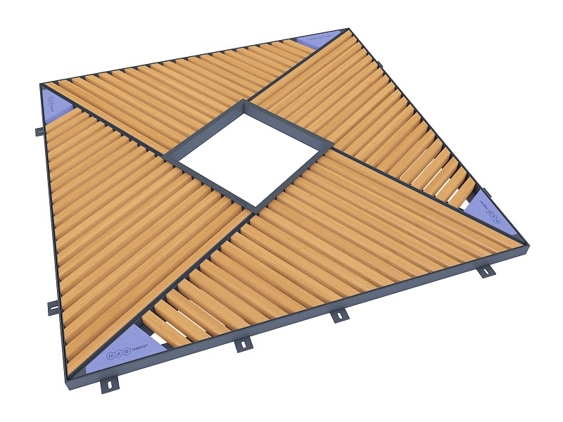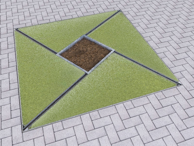 Приствольные решетки Trygo воплощают современный подход к благоустройству, где технологичность встречается с художественной выразительностью. Четыре идентичных модуля, собранные в стальную раму, создают гармоничную композицию, предлагая безграничные возможности для персонализации - от строгих стальных решеток до теплых деревянных ламелей, от монументального бетона до мягкого газонного покрытия.