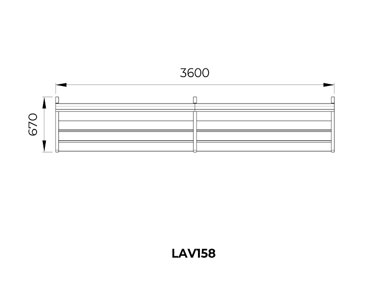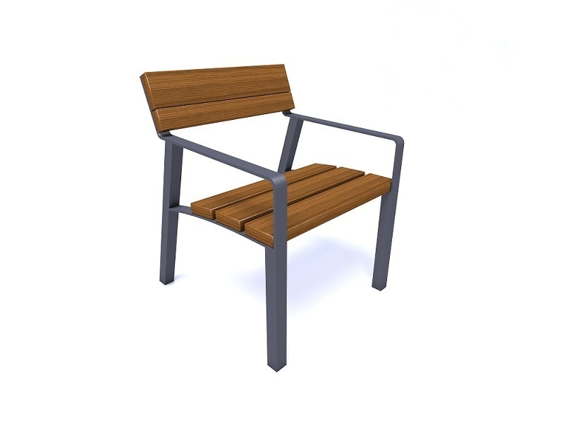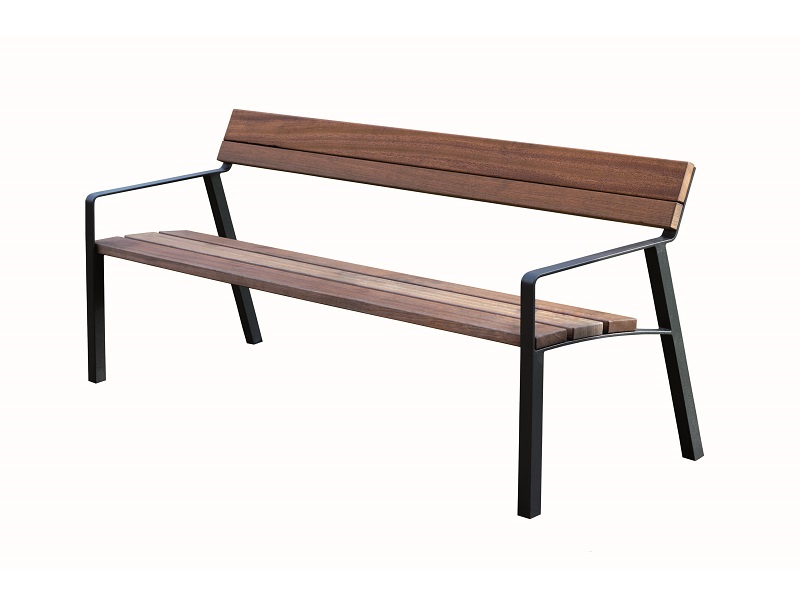 Каркас выполнен из оцинкованной стали окрашенной порошковой краской. Ламели сиденья и спинки изготовлены из твердых пород дерева и имеют скрытное крепление к боковине. Обе опоры могут быть закреплены анкерами к предварительно подготовленной бетонной поверхности.