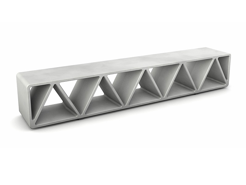 Форма этой скамьи, которую невозможно не заметить, вдохновлена одним из основных конструктивных элементов – фермы с треугольной решеткой. Скамья заимствует присущую ферме инженерную красоту и привносит ее в ландшафтную архитектуру. Размеренная игра четко определенных наклонных и прямоугольных плоскостей соединенных с радиусным сопряжением придает характер этому параллелепипеду из высококачественного UHPC бетона. Небольшие ножки на нижней стороне немного приподнимают массу скамейки над поверхностью, что подчеркивает элегантность скамья и позволяет скрыть неровности поверхности. Скамью длиной два с половиной метра можно установить как отдельно, так и парами, или же выстраивать длинными рядами.