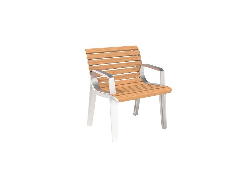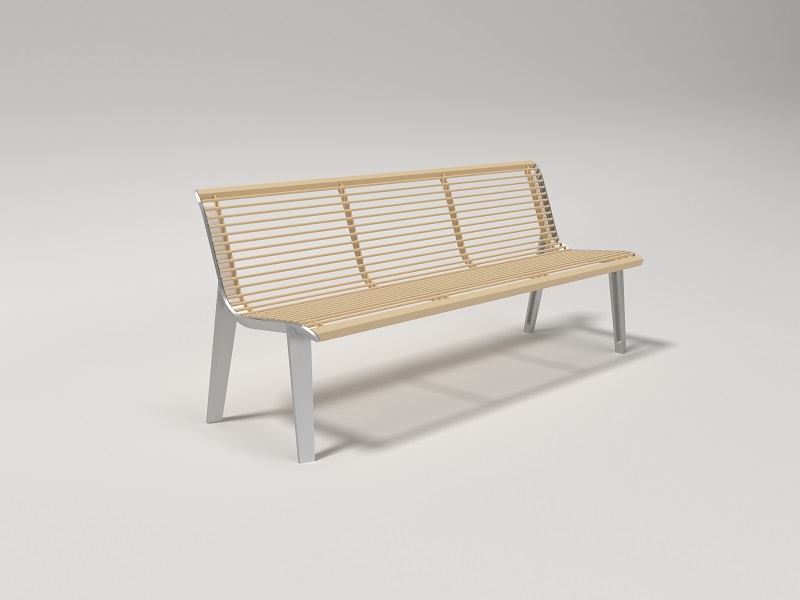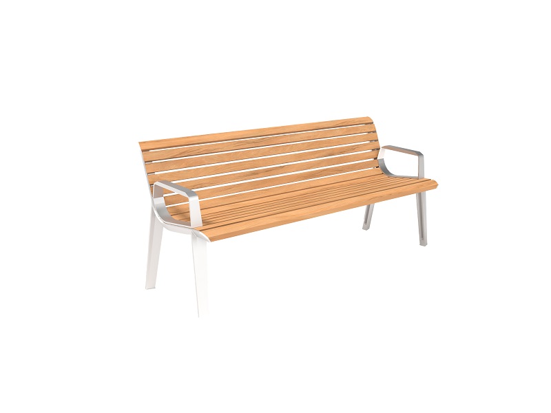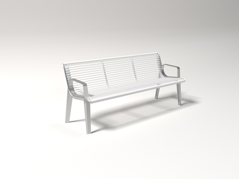 Опоры скамьи из переработанного и полностью перерабатываемого алюминиевого сплава, ламели из массива лиственницы, термоясеня или акации, подлокотники из горячеоцинкованной стали, покрытой порошковой краской или из нержавеющей стали. Сиденье и спинка предлагаются и в варианте из стальных стержней, возможен и вариант из нержавеющей стали. Доступна элегантная анкеровка в фундамент с помощью шпилек на химический анкер на предварительно подготовленное бетонное основание.