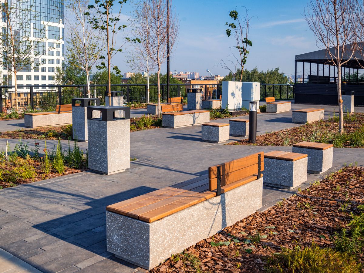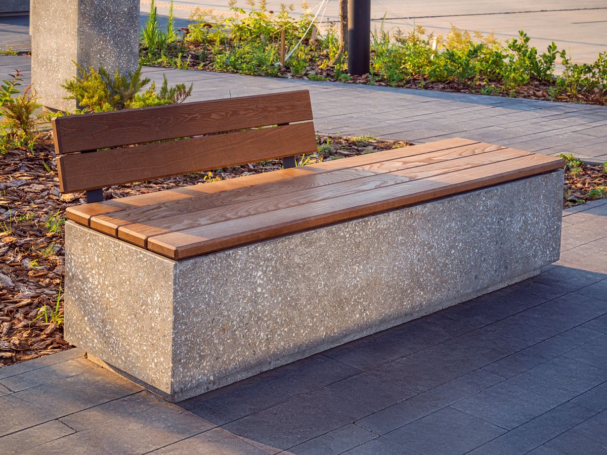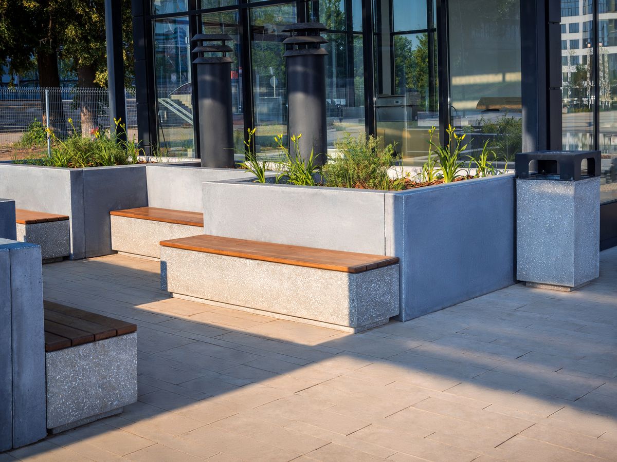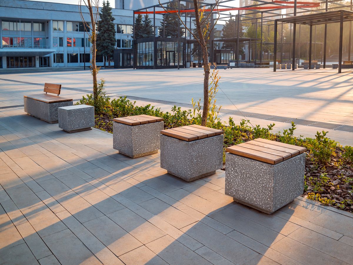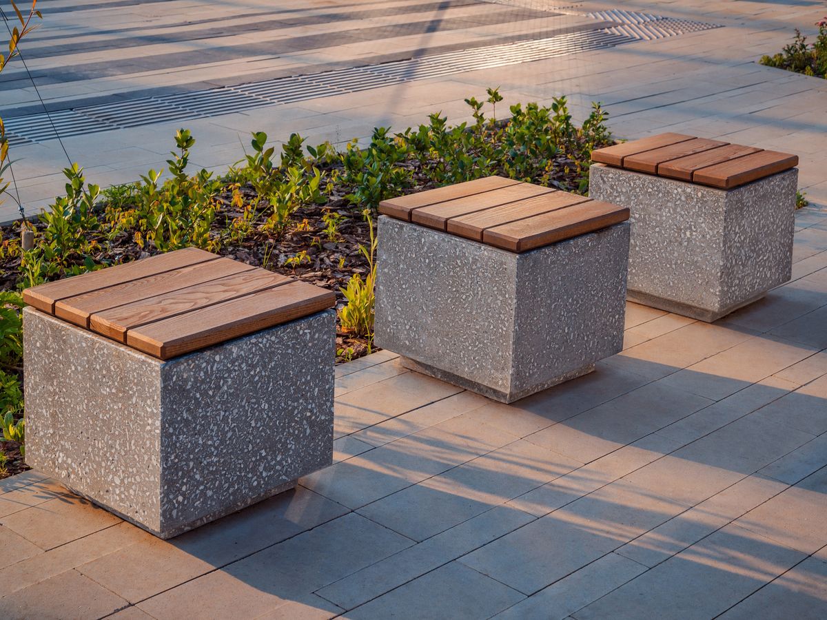 Простота и лаконичность форм серии Kubik являются главными составляющими дизайна. Мощные и выверенные пропорции бетонного основания могут дополняться удобным сидением из деревянных ламелей.
