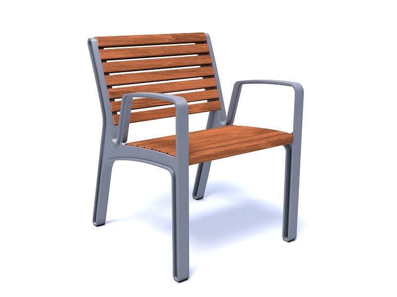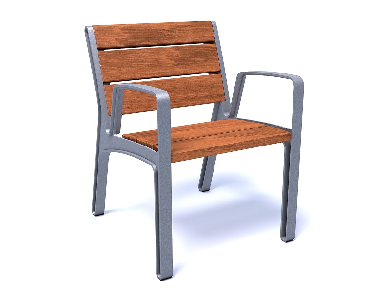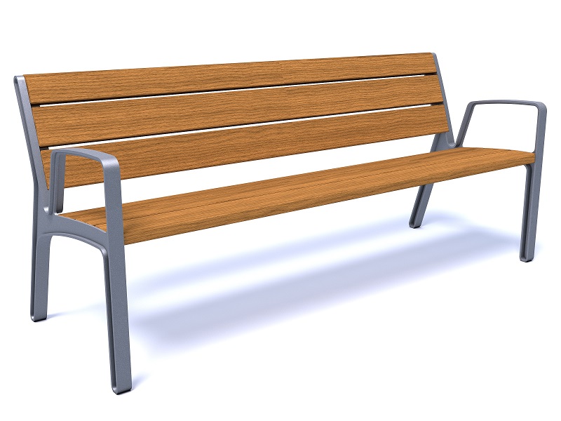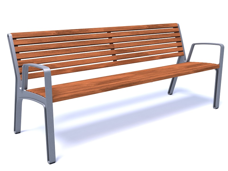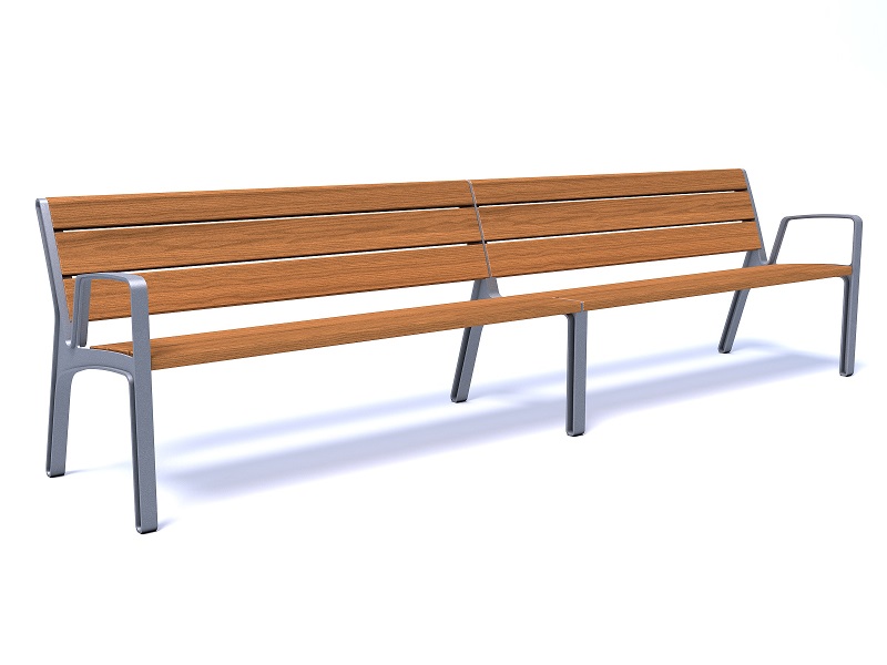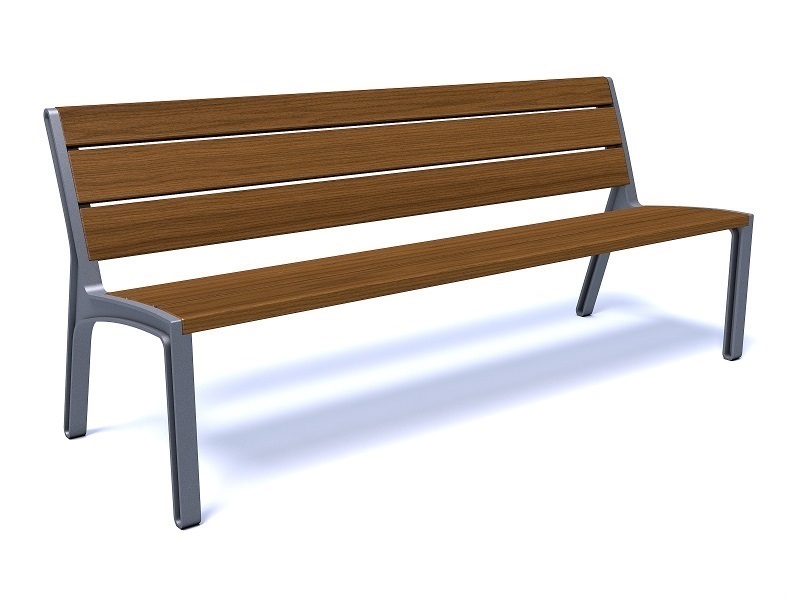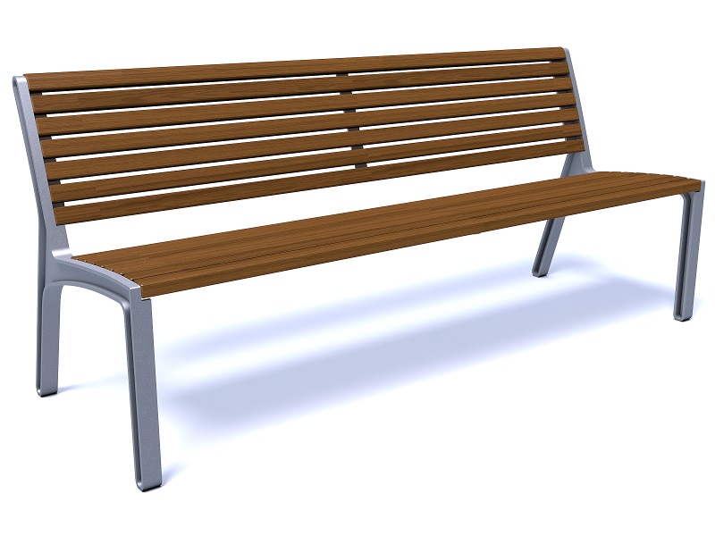 Боковины скамьи изготовлены из алюминиевого сплава, переработанного и подлежащего дальнейшей переработке; сиденье и спинка из досок или ламелей из массива дерева. Оригинальное и прочное крепление на поверхность.