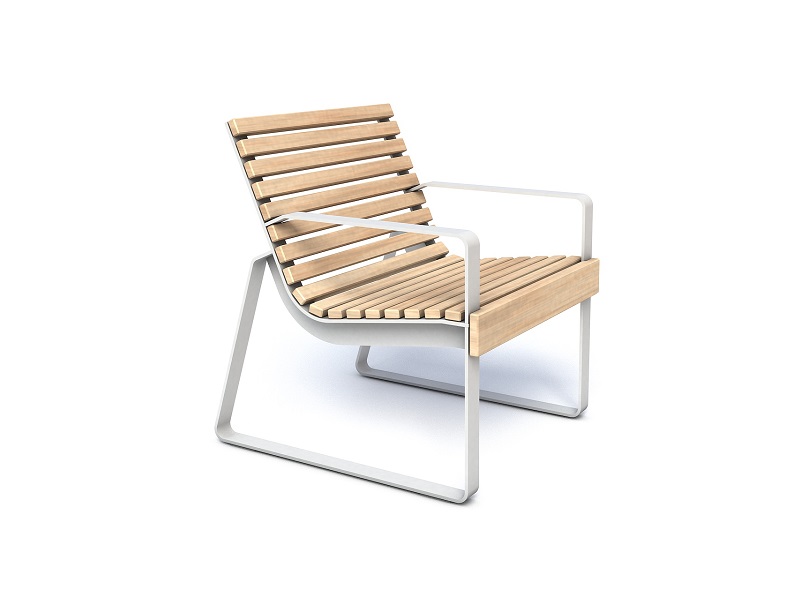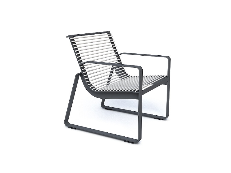 Оцинкованная стальная конструкция из стального профиля, покрытая порошковой краской. Спинка и подлокотник из деревянных ламелей создают единую поверхность, имеются и варианты сиденья из стальных стержней, или же стержней из нержавеющей стали. Рекомендуется крепление с помощью шпилек на химический анкер на предварительно подготовленное бетонное основание.