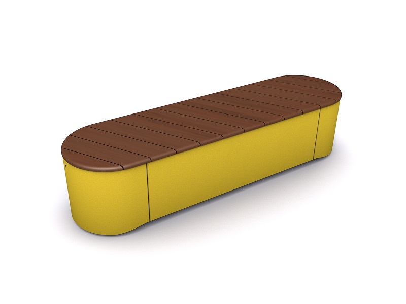 Большая поверхность – для сидения, островок чуть повыше – для ноутбука, самый высокий – послужит в качестве спинки. Уникальная форма основана на простой геометрии нескольких овальных элементов. Трехуровневая композиция из горизонтальных плоскостей привносит новое восприятие объектов для сидения в общественном пространстве. Модули могут быть размещены отдельно или объединяться в игривый „архипелаг“. Взаимное проникновение форм, смена ориентации деревянных ламелей, различное цветовое исполнение корпуса создают общий впечатляющий эффект. Дерево горизонтальных поверхностей может быть заменено HPL, гладкая поверхность, цветовое и графическое многообразие которого могут изменить характер продукта. Возможности комбинаций неограниченны и способны удовлетворить фантазию даже самого креативного архитектора, желающего внести в свой проект что-то новое и необычное.