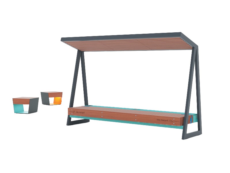 Сиденье из массивных деревянных досок, соединенных винтами из нержавеющей стали в несущий "сэндвич", стальная оцинкованная конструкция покрыта порошковой краской. Фотовольтаические панели общей номинальной мощностью 2 × 140Вт, расположенные над сиденьем с обшивкой из деревянных реек. Имеются 2 двойных встроенных USB-разъема для зарядки гаджетов. Опционально Wi-Fi роутер с зоной покрытия 100 м.