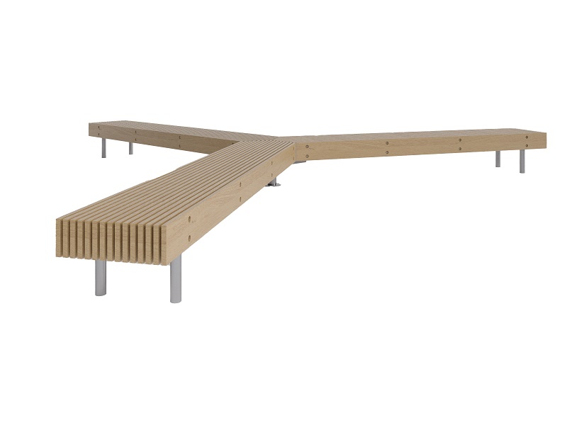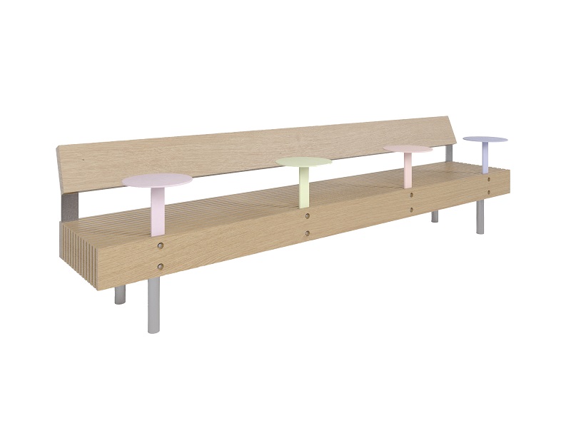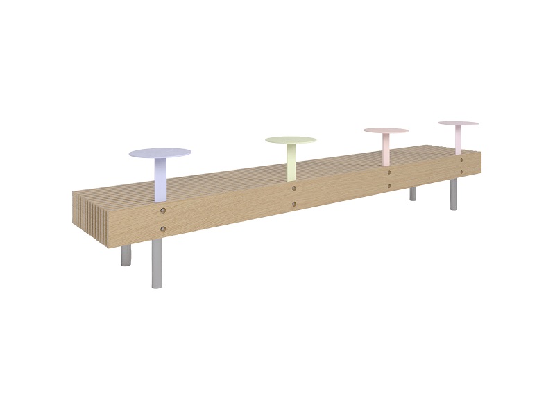 Скамья, вдохновленная эстетикой массива древесины. Woody состоит из деревянных блоков, надежно закрепленных шестью винтами из нержавеющей стали. Сиденье расположено на визуально тонких стальных ножках, создавая при этом ощущение парения в воздухе. Скамья не требует дополнительного обслуживания в течение всего срока эксплуатации. Все деревянные детали сохраняются в натуральном виде и не имеют никакого покрытия, кроме пропитки от вредителей, что помогает подчеркнуть естественный и эстетичный процесс старения древесины. Скамья состоит из модулей, позволяющих создать различные линейные или замкнутые комбинации. Некоторые модули имеют дополнительные функции, такие как встроенная велопарковка или защита для ствола дерева. Вариант с USB-разъемом будет удобен для тех, кто захочет задержаться на улице подольше. Интересным и практичным дополнением является прочный столик для напитка, ноутбука или книги, контрастная окраска которого добавит привлекательный акцент. Вечером выделится декоративная LED подсветка, доступная для всех моделей Woody. Частью коллекции является и детская мини-версия скамьи, подходящая для самых маленьких любителей провести время на свежем воздухе.