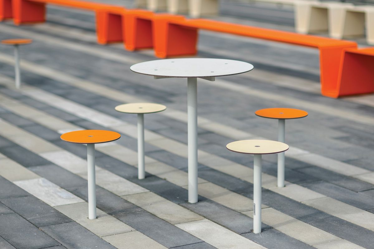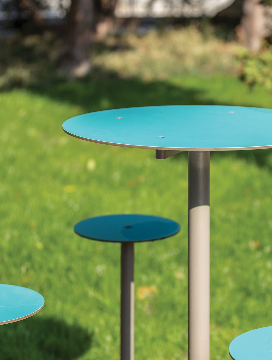 Оригинальная концепция мебели для общественного пространства. Для короткой встречи, быстрого перекуса или отправки электронного письма. Высокий табурет действительно удобен, даже когда вы в костюме. Благодаря своим компактным размерам Bistrot подходит даже для очень ограниченных пространств. В сочетании со столиками можно создать интересные композиции для перекусов на свежем воздухе. Прочная стальная конструкция с сиденьем или столешницей из HPL для использования в экстерьерах, возможность добавления графики или рисунка. Выбор цвета не имеет границ.