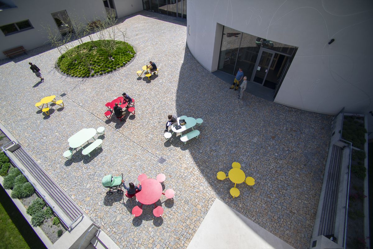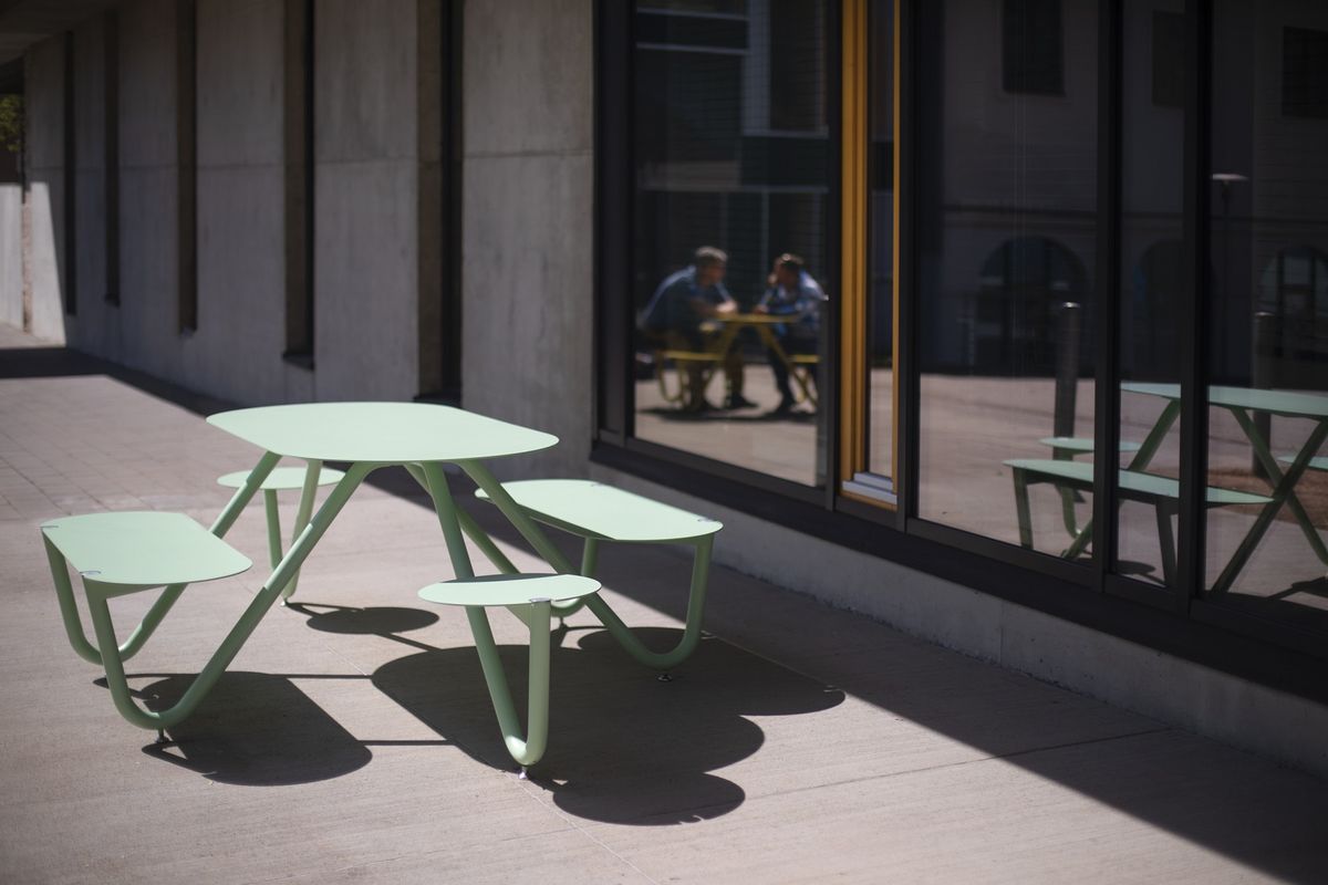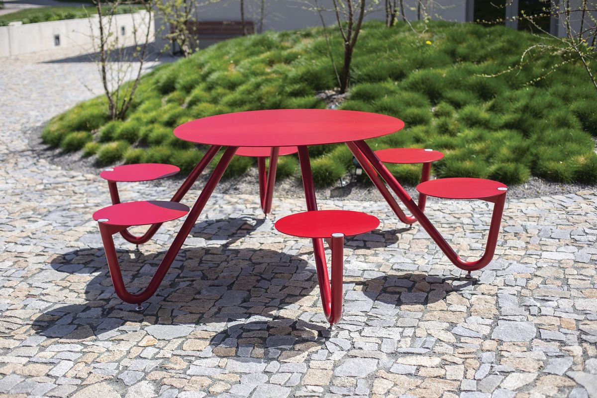 Словно планеты, сиденья вращаются вокруг круглого стола, но также могут объединяться и в овал. Каждый может насладиться трапезой на свежем воздухе как в одиночестве, так и в окружении коллег и друзей, или же на достаточном расстоянии друг от друга. Чистый дизайн без излишеств несет ясное и свежее выражение, которое придаст яркий акцент любому пространству. Надежный и устойчивый, стол с регулируемыми ножками можно закрепить на поверхность, если необходимо. Orbit найдет свое место не только в парке, сквере или пешеходной зоне, но и в таких местах как школьный двор, фирменная столовая или любой другой вид гастрономии.