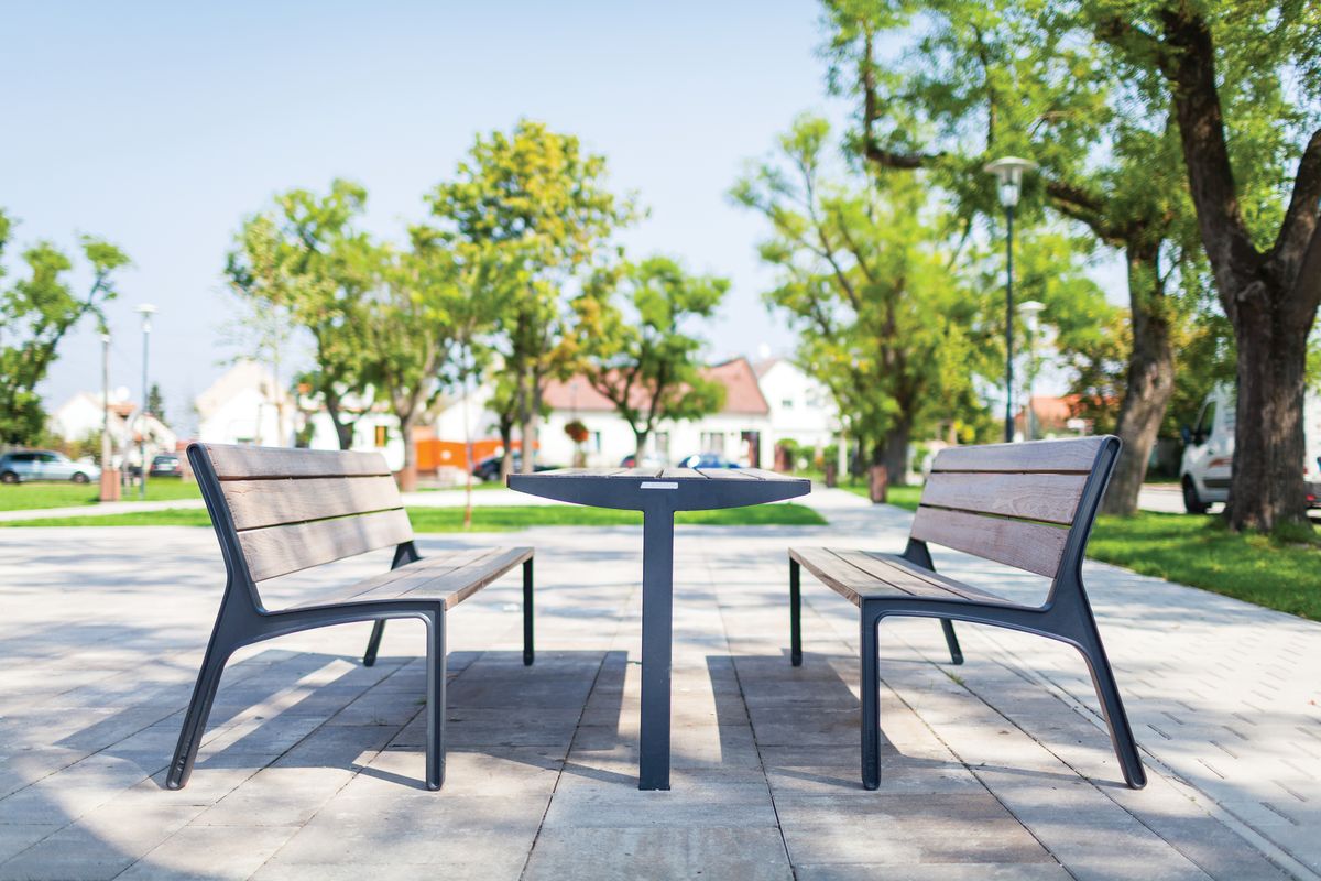 Вариативная система, продолжающая серию парковой мебели Vera, позволяет создавать длинные столы. Ножки расположены по оси стола, что упрощает силуэт, облегчает доступ с обеих сторон и уборку пространства под столом. Приятные пропорции, спокойный актуальный дизайн и высокая вариативность предопределяют серию Vera Solo для использования в самом широком спектре проектов.