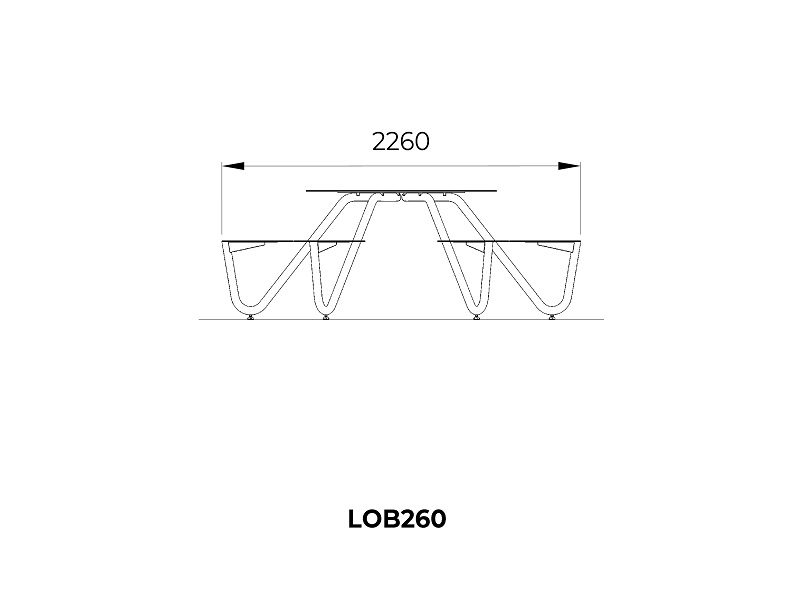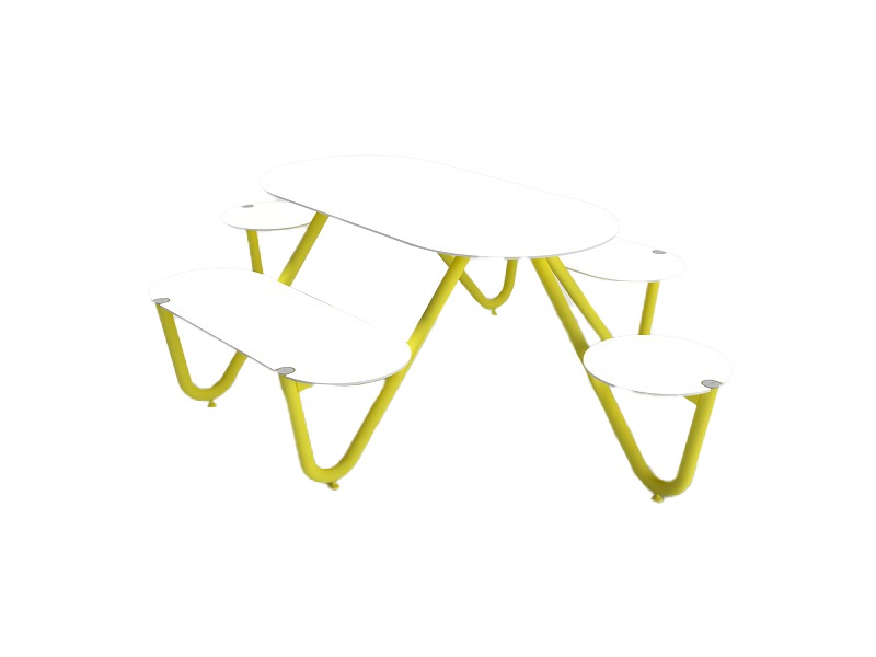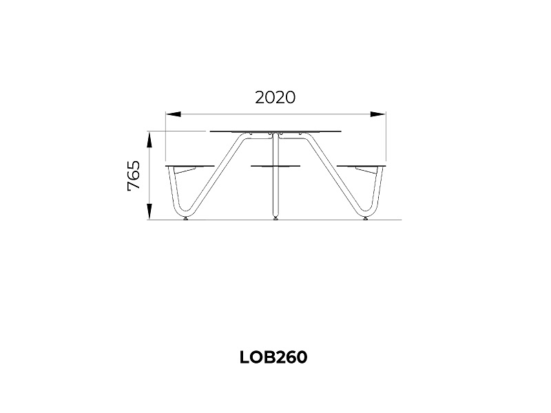 Стальная оцинкованная конструкция, штабелируемая во время транспортировки, состоит из сидений и столешницы из алюминиевого листа или HPL-пластика. Регулируемые ножки из нержавеющей стали помогут установить стол на неровную поверхность, для более надежного крепления к поверхности можно использовать специальные анкерные шпильки.