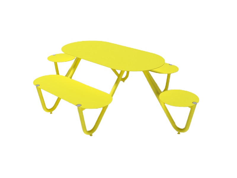Словно планеты, сиденья вращаются вокруг круглого стола, но также могут объединяться и в овал. Каждый может насладиться трапезой на свежем воздухе как в одиночестве, так и в окружении коллег и друзей, или же на достаточном расстоянии друг от друга. Чистый дизайн без излишеств несет ясное и свежее выражение, которое придаст яркий акцент любому пространству. Надежный и устойчивый, стол с регулируемыми ножками можно закрепить на поверхность, если необходимо. Orbit найдет свое место не только в парке, сквере или пешеходной зоне, но и в таких местах как школьный двор, фирменная столовая или любой другой вид гастрономии.