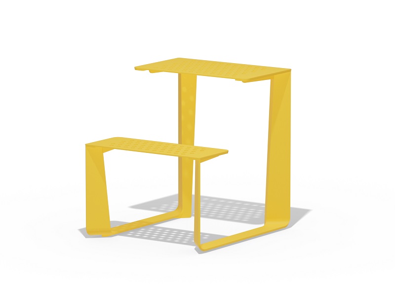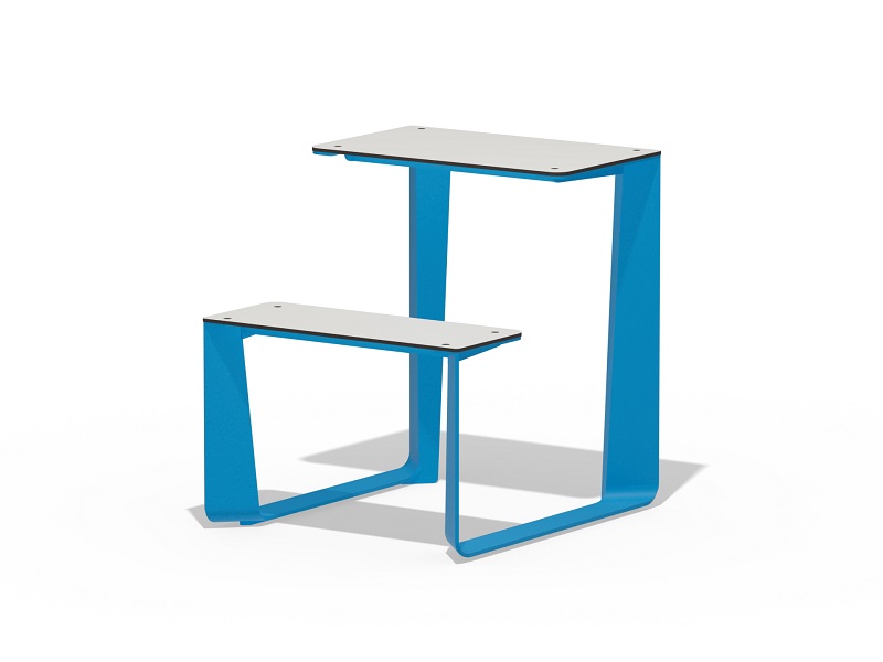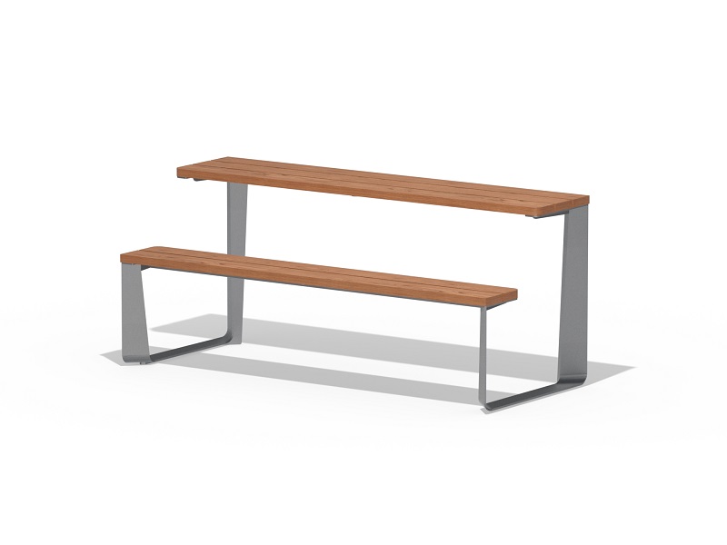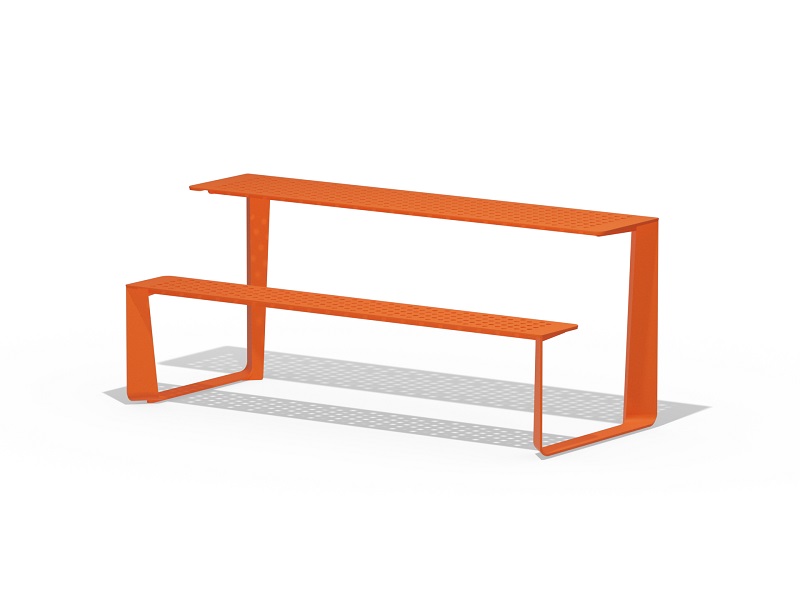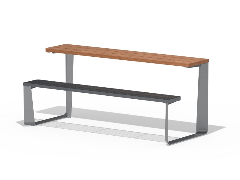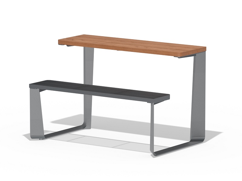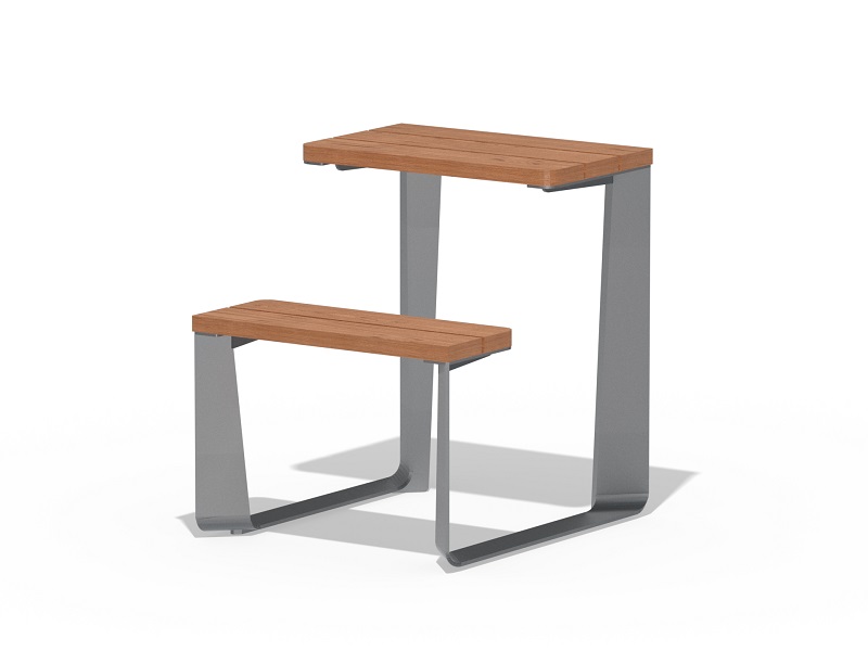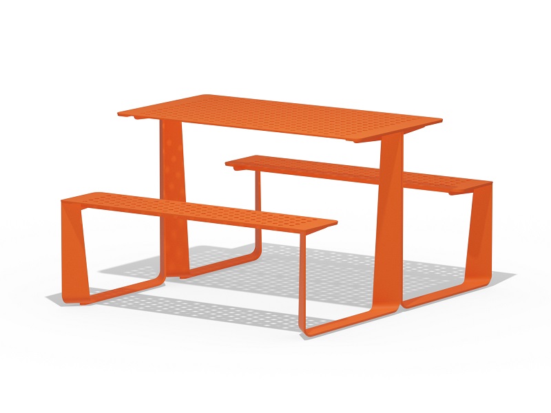 Стальная оцинкованная конструкция, покрытая порошковой краской. Сиденье и стол могут быть изготовлены из деревянных ламелей, стального листа, стальных стержней или HPL-пластика. Возможна любая комбинация этих материалов. Доступен вариант крепления на брусчатку, или без крепления.