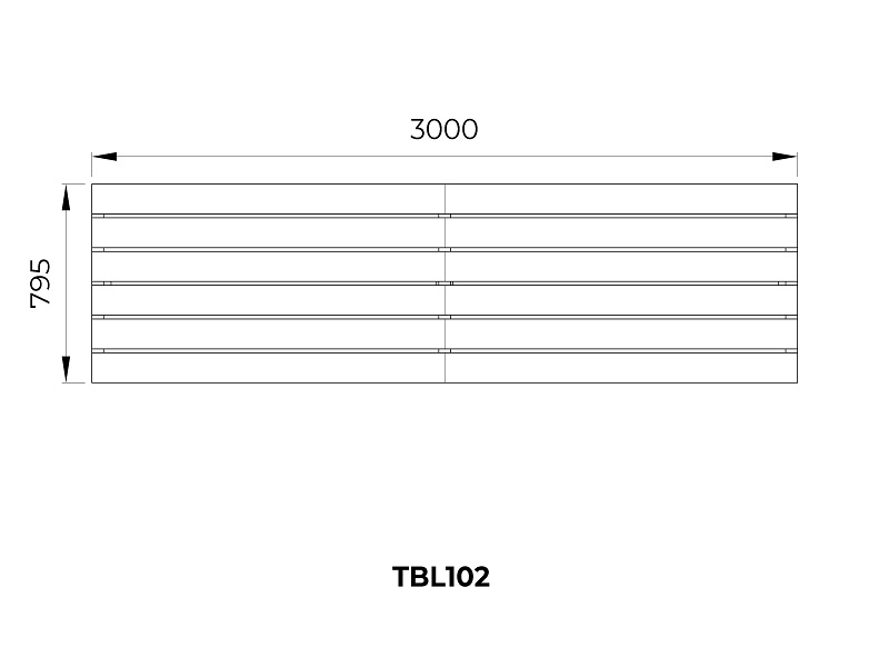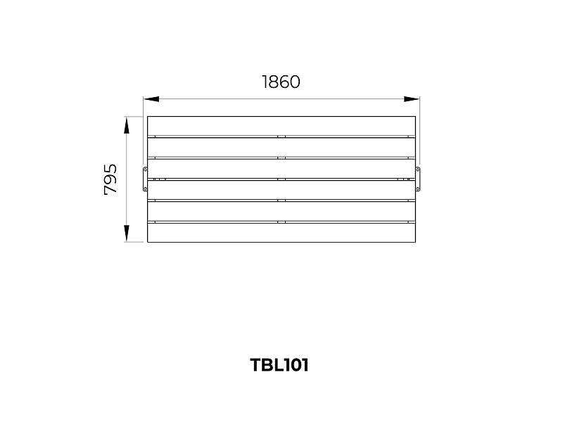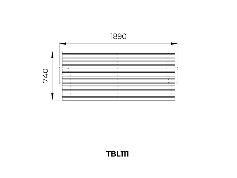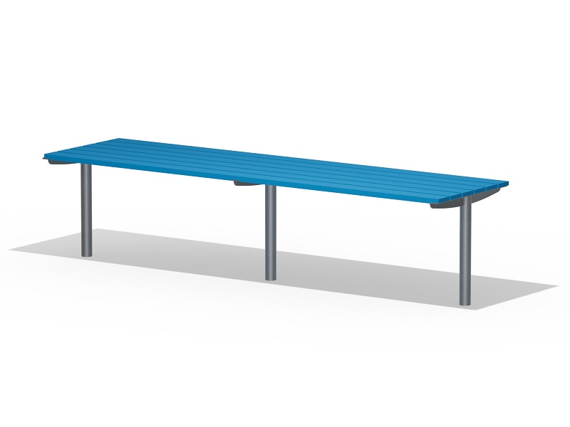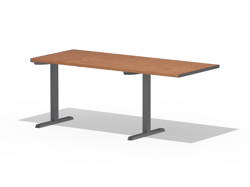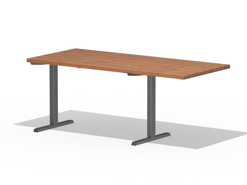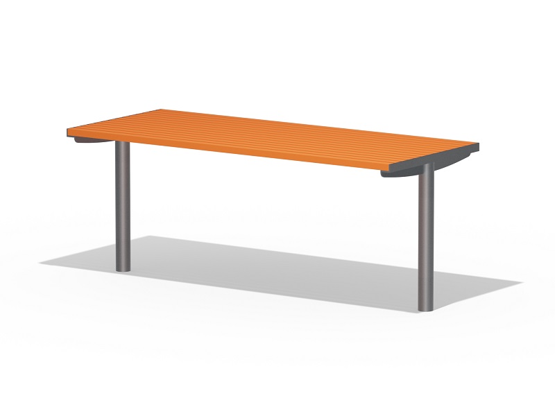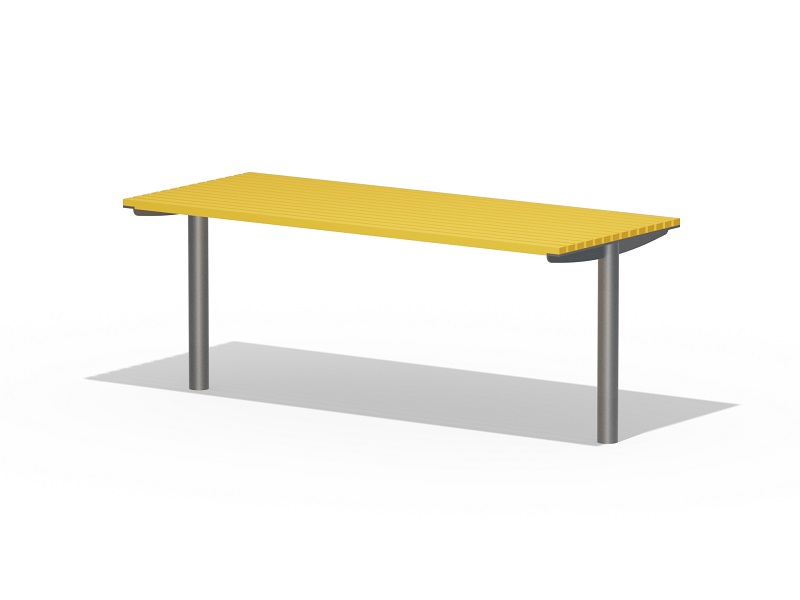 Оцинкованная стальная конструкция, покрытая порошковой краской или без покраски. Столешница из деревянных ламелей или решетки из четырехгранных стальных профилей. Обе ножки прочно закрепляемы под поверхность.