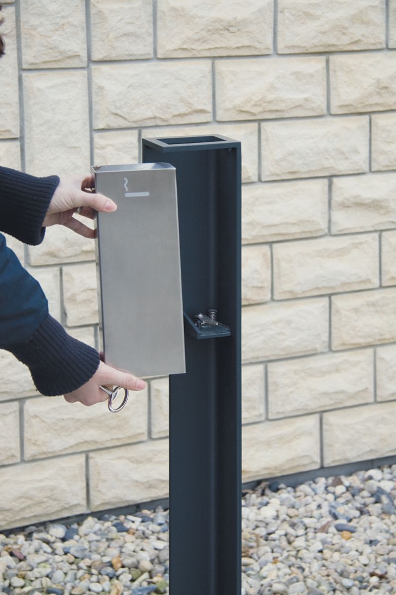 Пепельницы стали современным элементом уличной мебели, поэтому мы разработали модель Valet. Изящная, сдержанная уличная пепельница, созданная в семействе Lot bollard design, является типичной отдельно стоящей пепельницей, подходящей для различных помещений. Одна из моделей была переработана для использования в качестве диспенсера пакетов, для установки рядом с контейнерами для сбора собачьих отходов. К ее преимуществам, помимо внешнего вида, относятся качество изготовления и простота в эксплуатации.