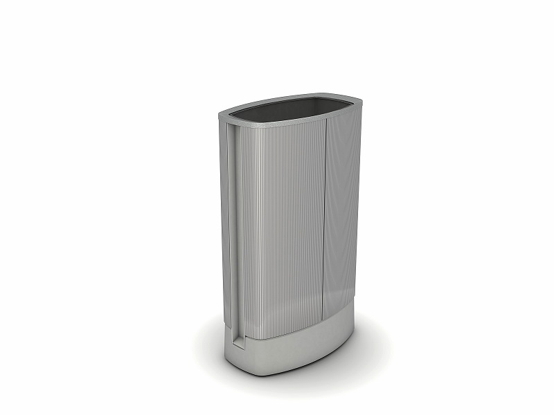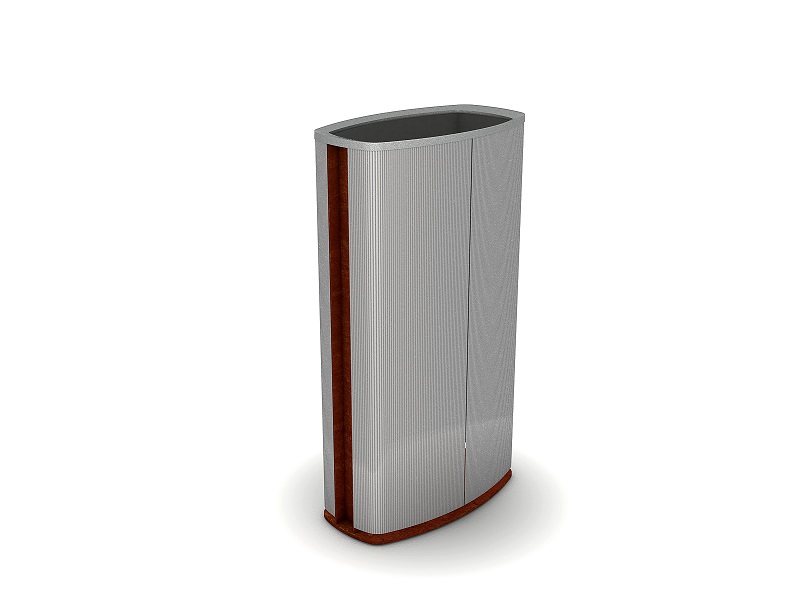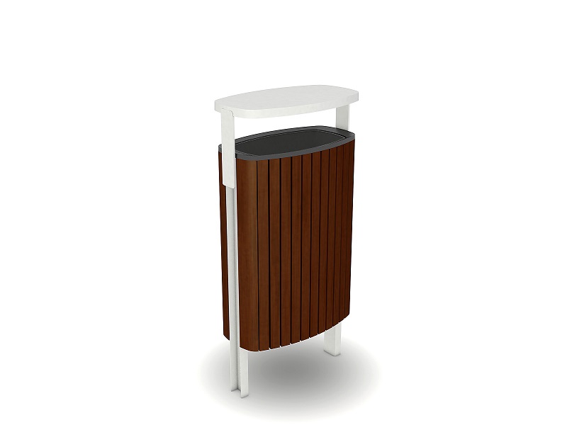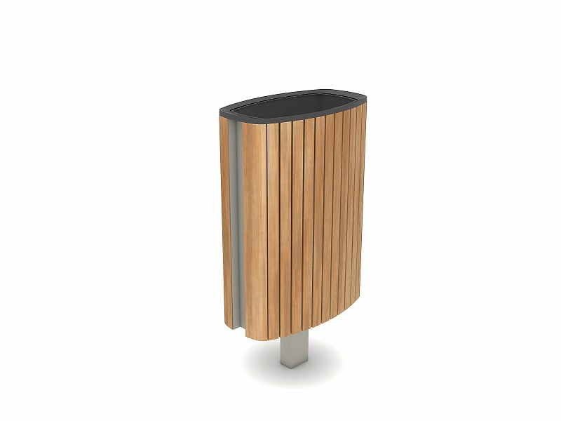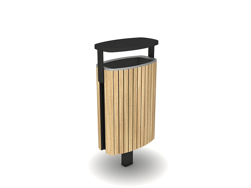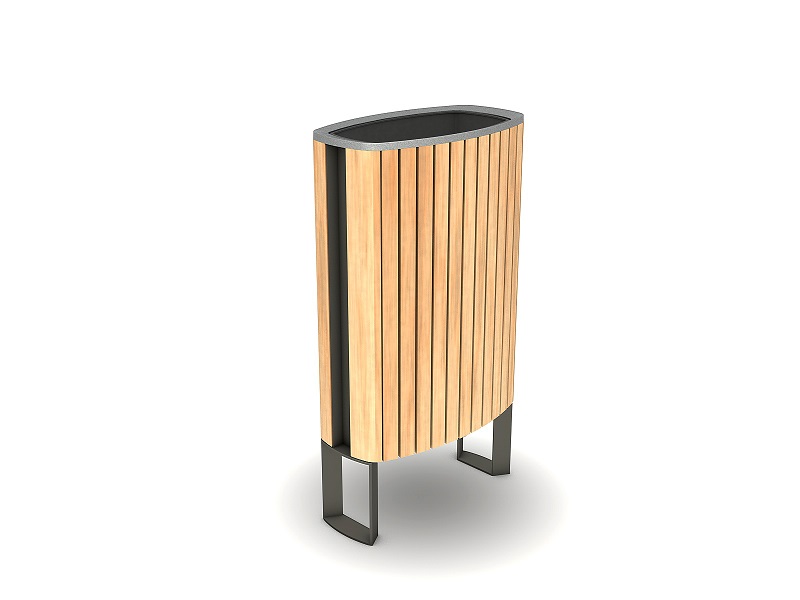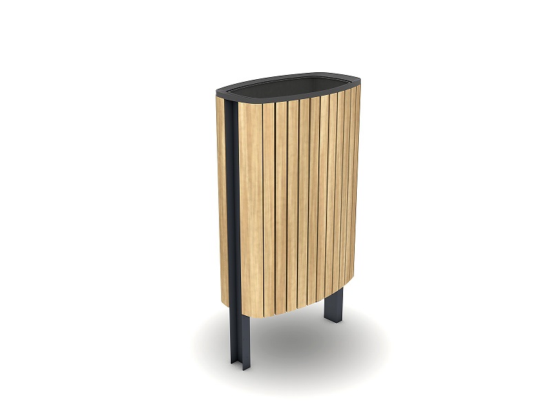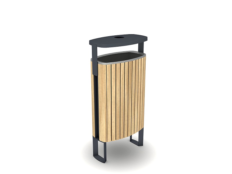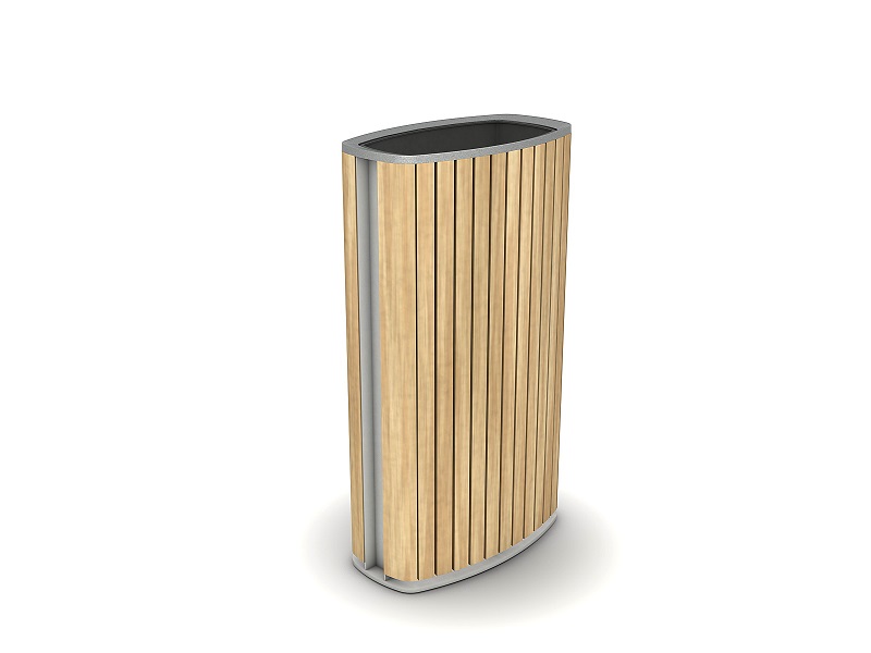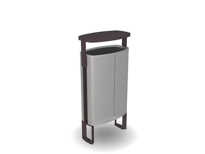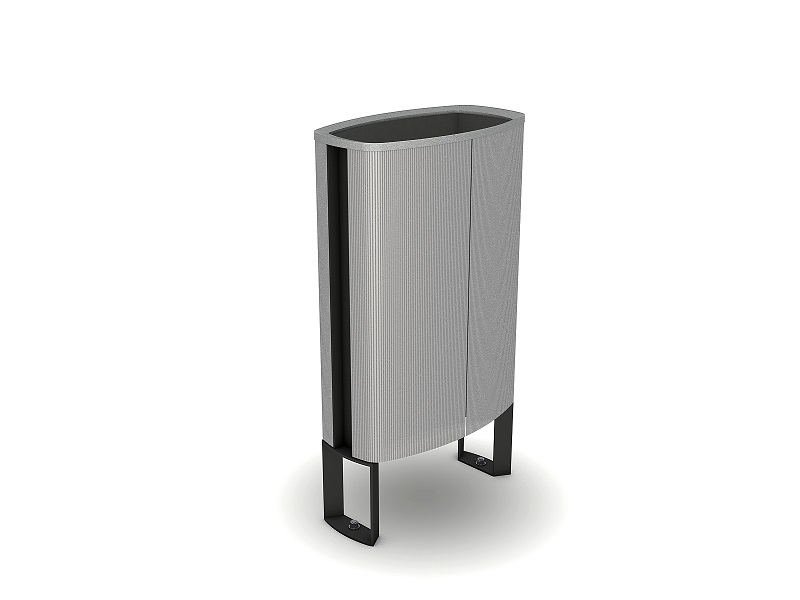 Каркас из горячеоцинкованной стали, покрывается порошковым покрытием. Внешние панели могут быть изготовлены из анодированного алюминиевого профиля, окрашены порошковой краской или деревянных реек. Верхнее кольцо и крышка изготовлены из литого алюминия, покрытого порошковой краской. Крышка может дополнительно оснащаться пепельницей из нержавеющей стали. Внутренняя вставка из листовой оцинкованной стали или рамка из нержавеющей стали для использования пластикового пакета. Устанавливается на поверхность, закрепляется ниже уровня мощения, устанавливается отдельно без дополнительного крепления или устанавливается на столб – на ваш выбор большое число вариантов монтажа.