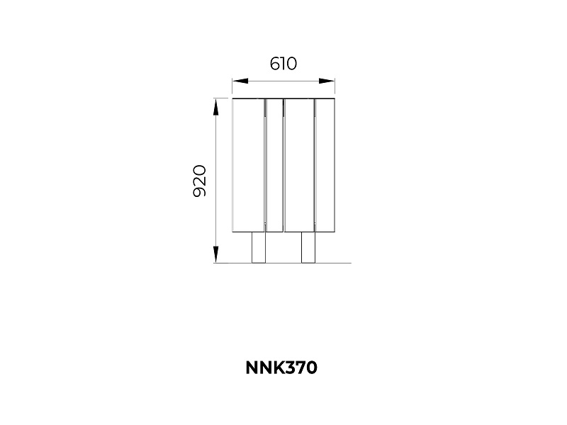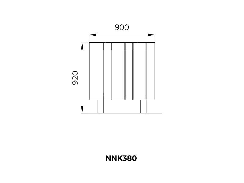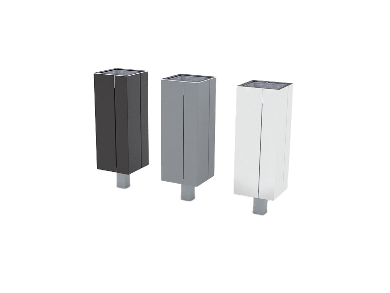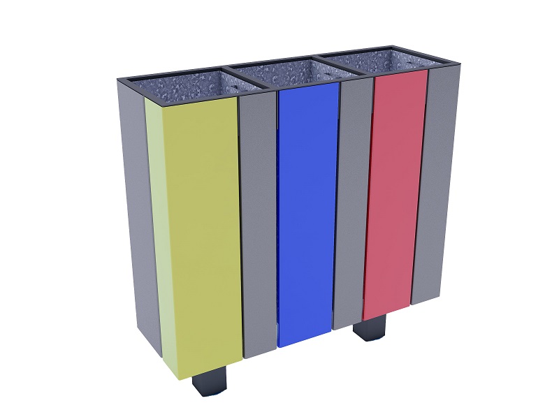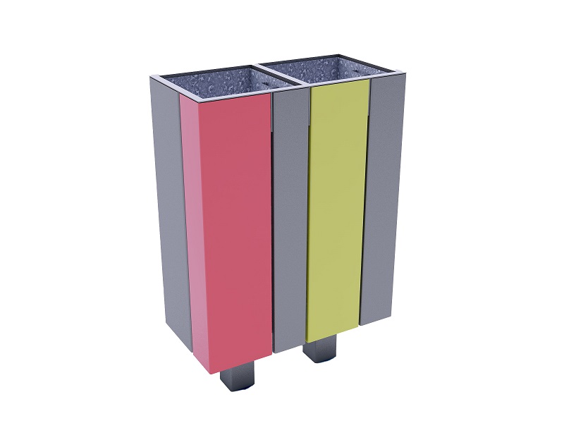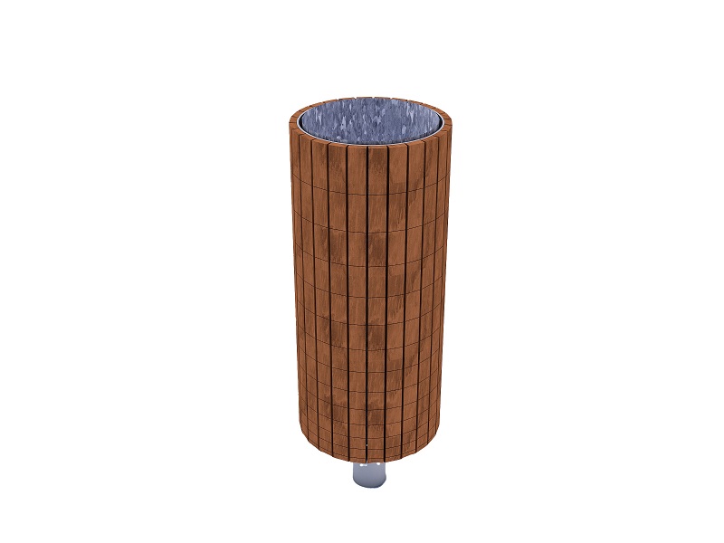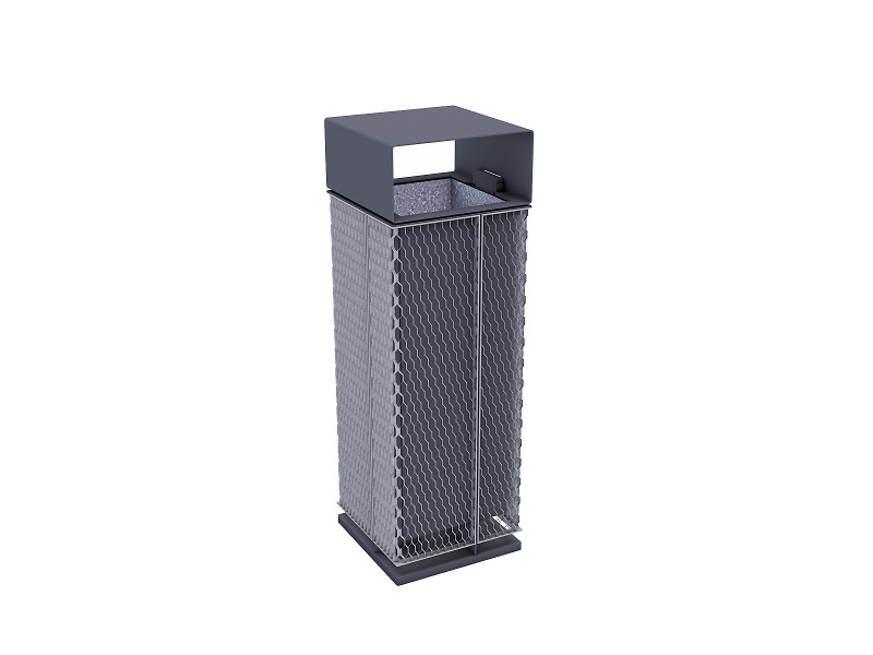 Каркас из горячеоцинкованной стали, покрытой порошковым покрытием. Обшивка выполнена из деревянных планок, армированного гнутого металлического листа, ПВЛ или HPL. Дополнительная крышка изготовлена из алюминия или нержавеющей стали, покрытой порошковым покрытием. Крышка может дополнительно комплектоваться пепельницей из нержавеющей стали. Внутренняя вставка из оцинкованного стального листа. Монтируется на поверхности или закрепляется ниже уровня мощения на предварительно подготовленное бетонное основание.
