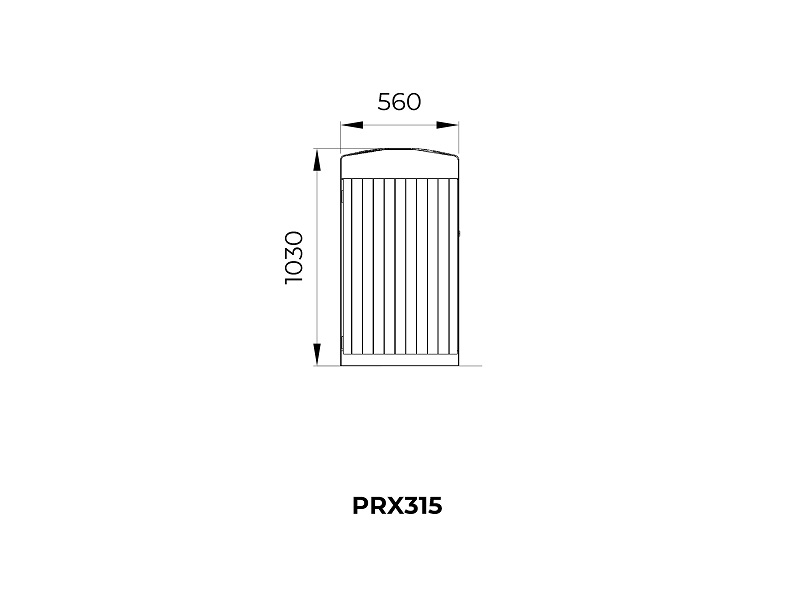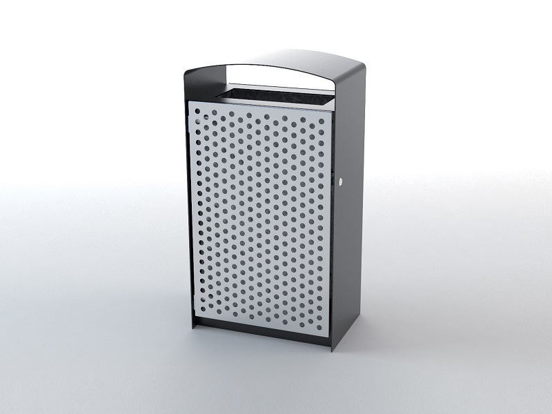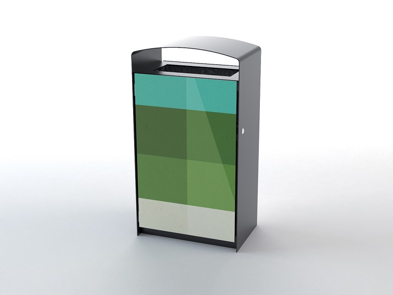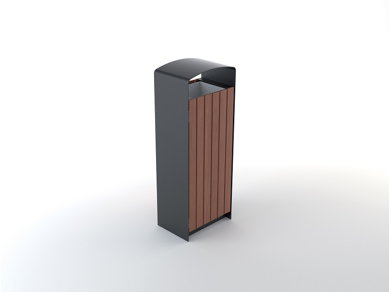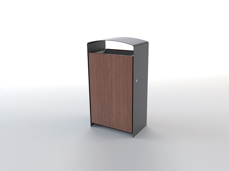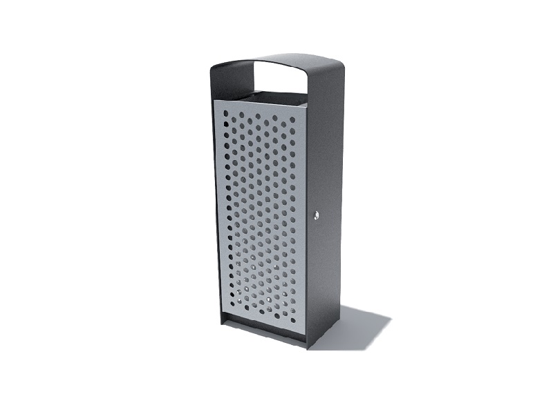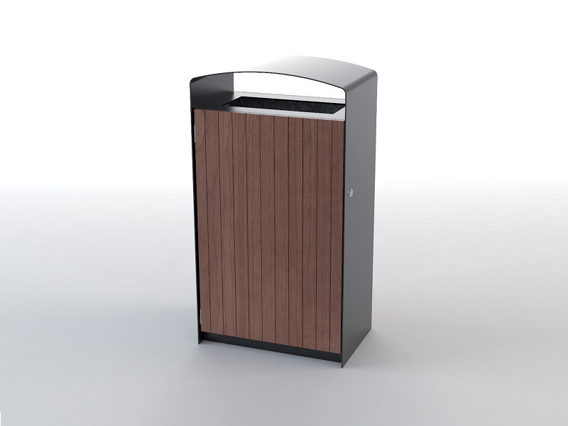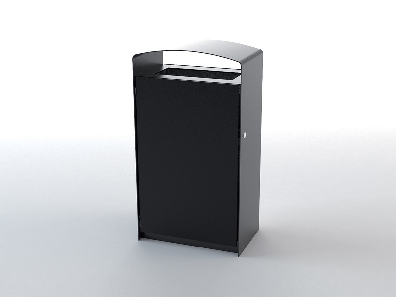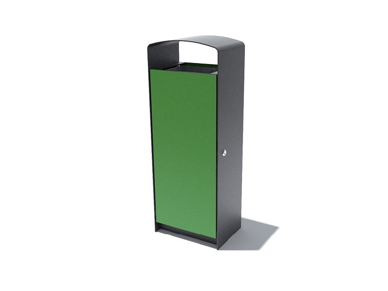 Каркас из горячеоцинкованной стали, окрашивается порошковым покрытием. Дверцы изготовлены из деревянных планок, перфорированной стали, листовой нержавеющей стали или HPL. Внутренняя вставка из листовой оцинкованной стали. Также возможно изготовление с рамкой из нержавеющей стали для использования с пластиковыми пакетами. Устанавливается на поверхность.