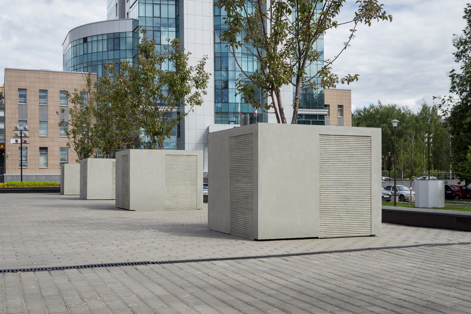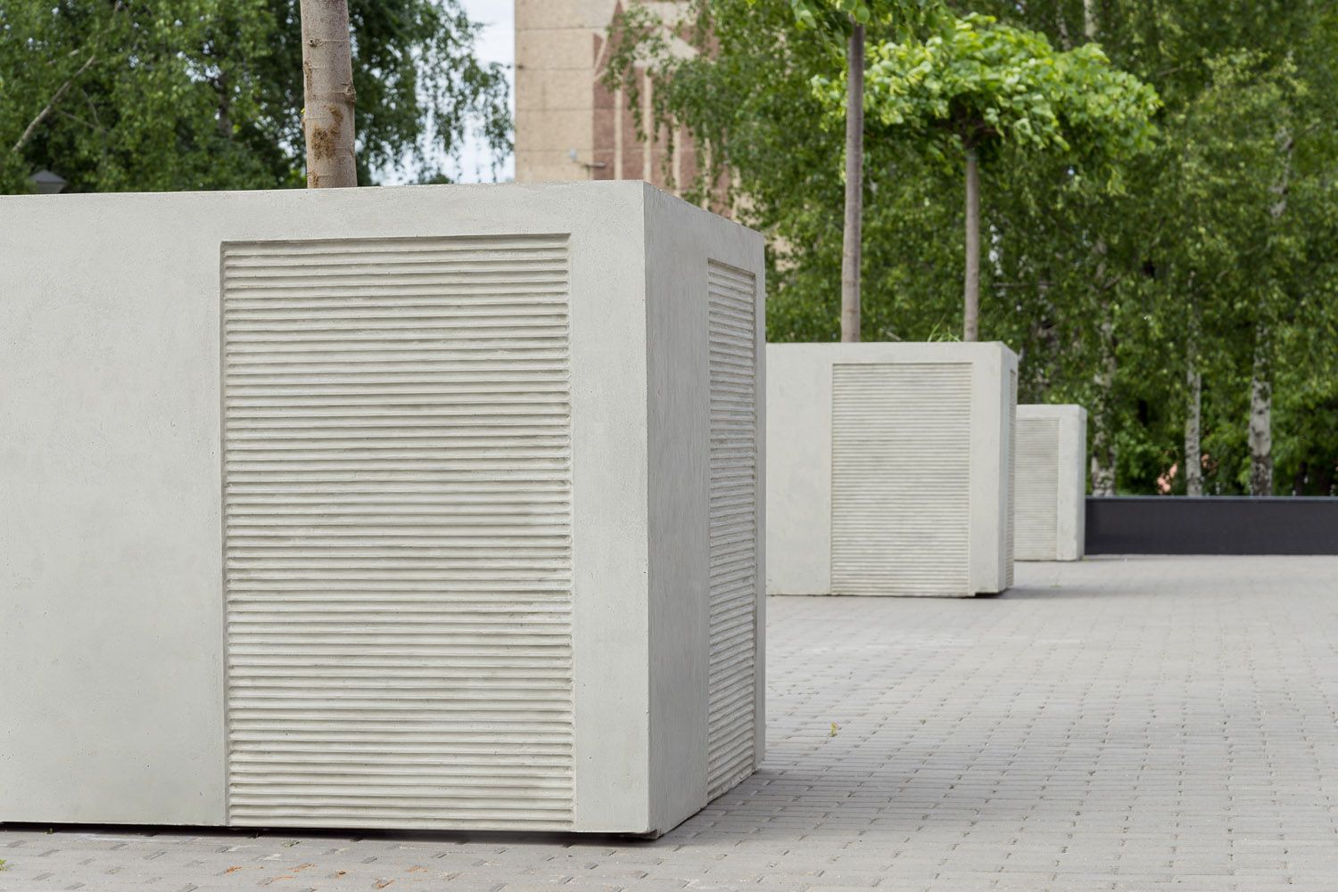 Простота и лаконичность форм серии вазонов Tanit являются главными составляющими дизайна. Большие размеры позволяют использовать их для посадки действительно многолетних деревьев с развитой корневой системой. В то же время волнообразный декор на боковых стенках вазона делает их менее брутальными и сглаживает впечатление от этих действительно гигантских бетонных кубов.