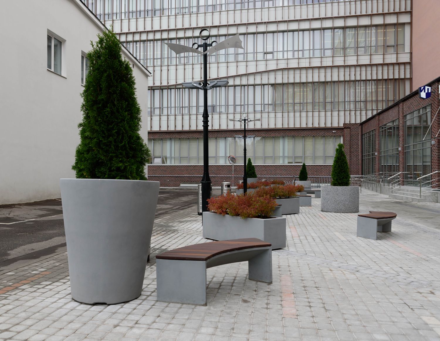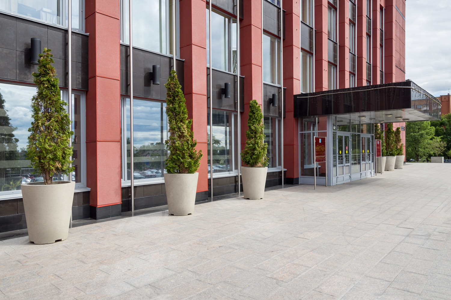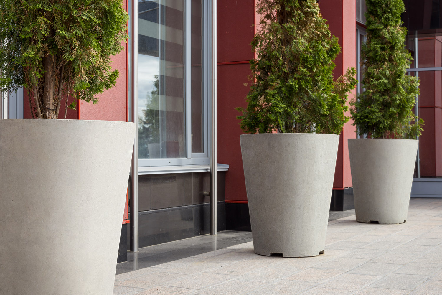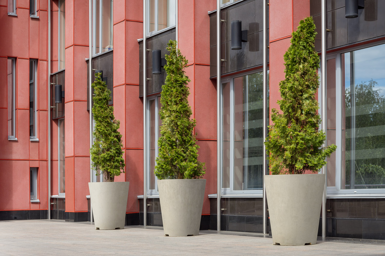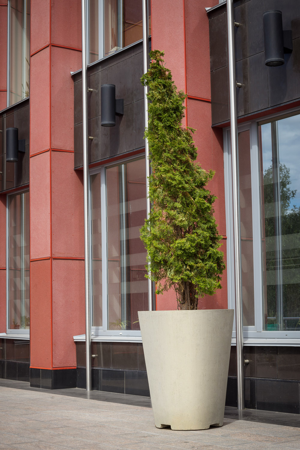 Дерево Туя в последнее время превратилось в универсального солдата ландшафтного дизайнера. Специально для этого красивого растения была создана серия вазонов, идеально подходящих для форм Туи. Различные размеры дерева определяют размеры вазонов, которые выполняются в едином дизайне, что позволяет использовать их в одном проекте.
