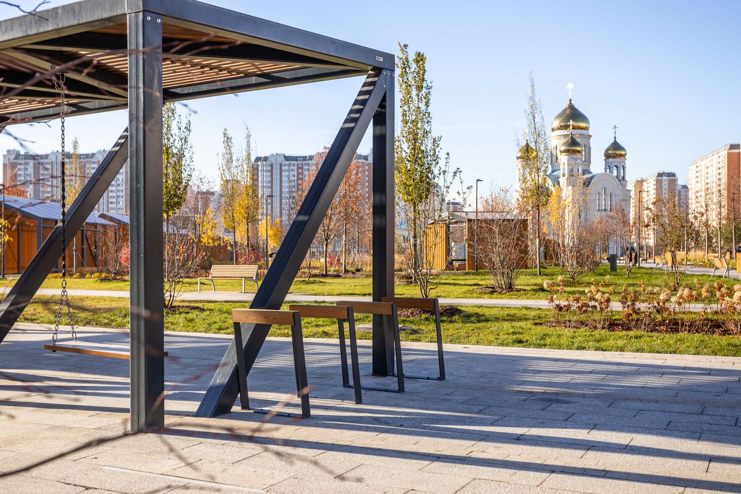 Конструкция из горячеоцинкованной стали, окрашенной порошковой краской. Горизонтальная балка изготовлена из деревянных реек и покрывается защитным маслом. Устанавливается на поверхность с помощью анкеров к предварительно подготовленному бетонному основанию.