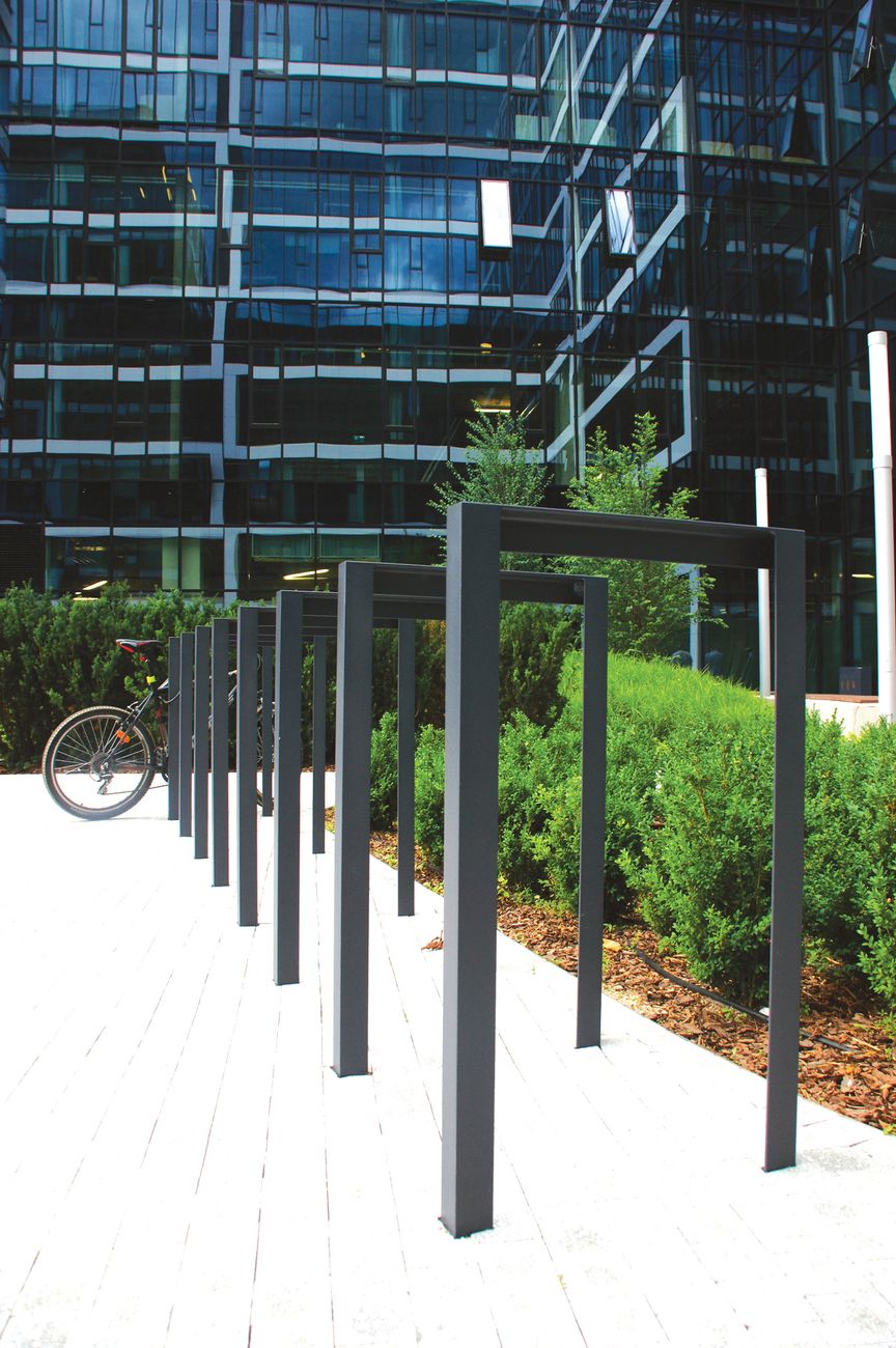 Скромная велосипедная стойка, созданная на основе семейства дизайнерских перил Lot limit, имеет самую простую морфологию - комбинацию L-образных профилей, что упрощает ее встраивание в любой проект. Он прекрасно сочетается как с современной, так и с исторической архитектурой.