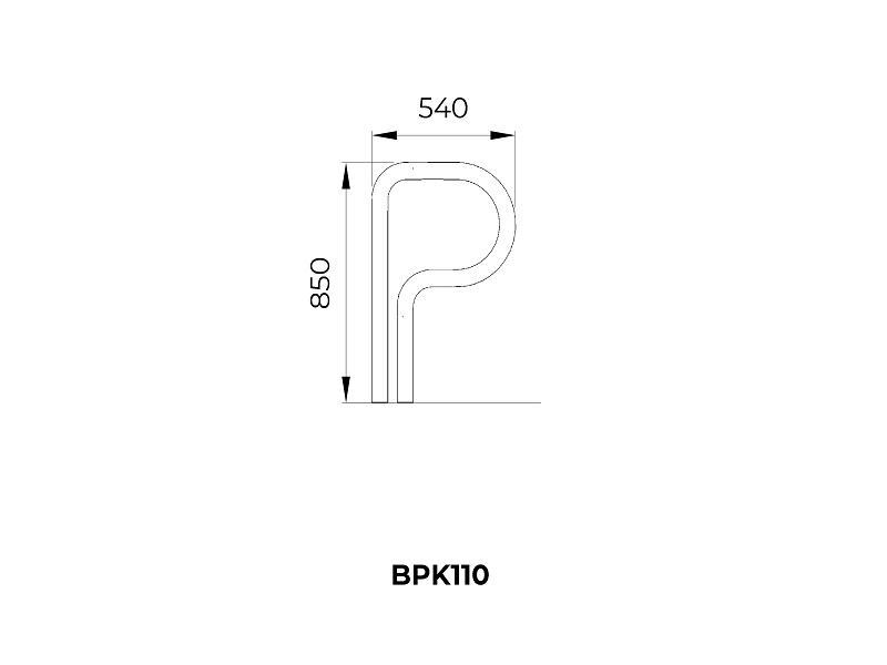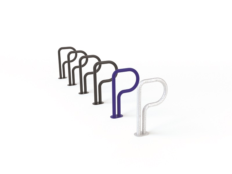 Опора для велосипедов, в которой четко обозначена буква P, форма которой с юмором используется для чисто функционального решения. Это часть общей системы, изначально установленной на парковочных местах на улицах. Он отлично смотрится как отдельно стоящий элемент, так и в составе групп.