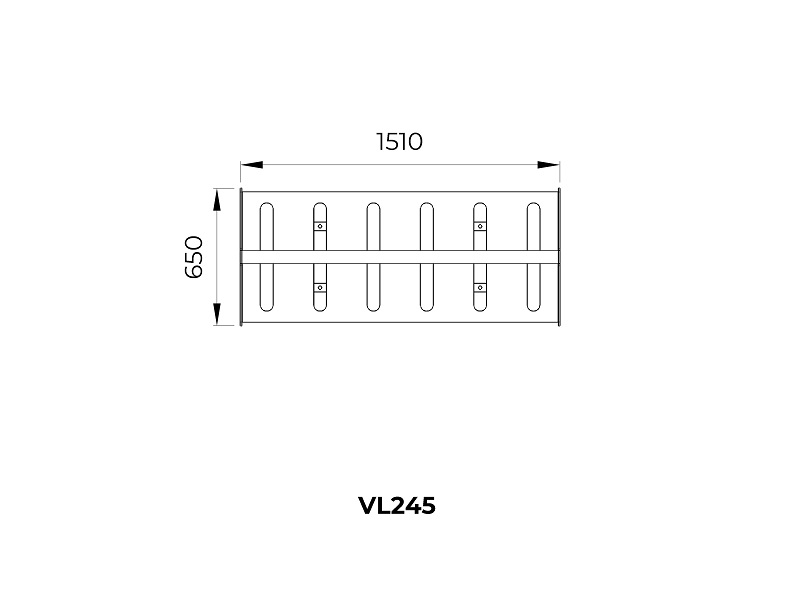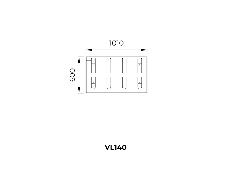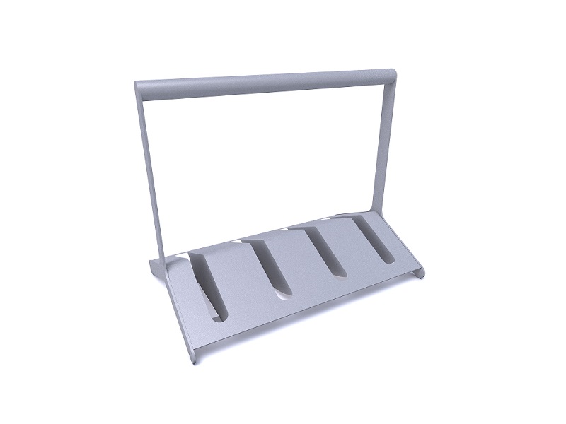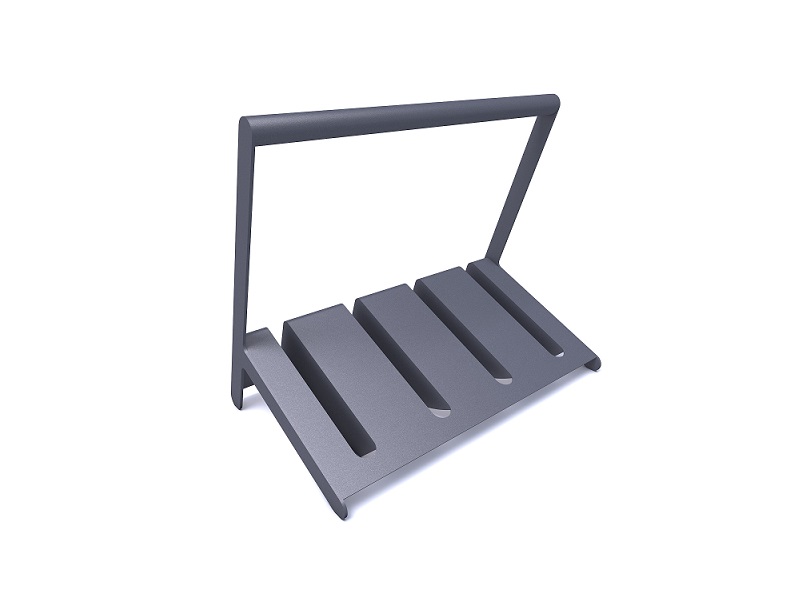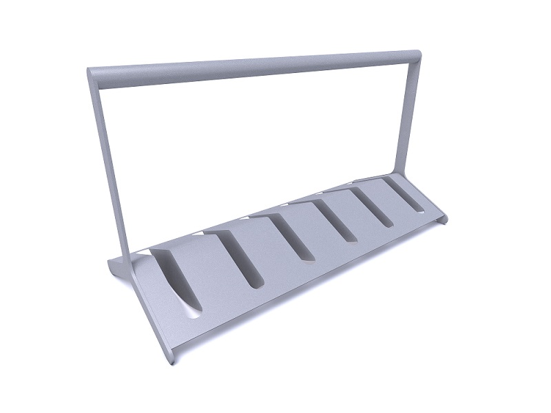 Конструкция из горячеоцинкованной стали, покрытая порошковой краской. Доступны в двух размерах для четырех или шести велосипедов. С горизонтальной рейкой для фиксации велосипедов. Для крепления на поверхность мощения с помощью анкеров.